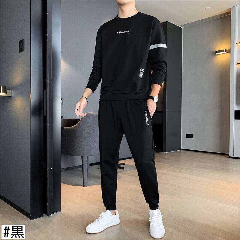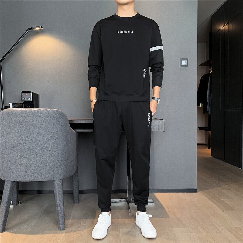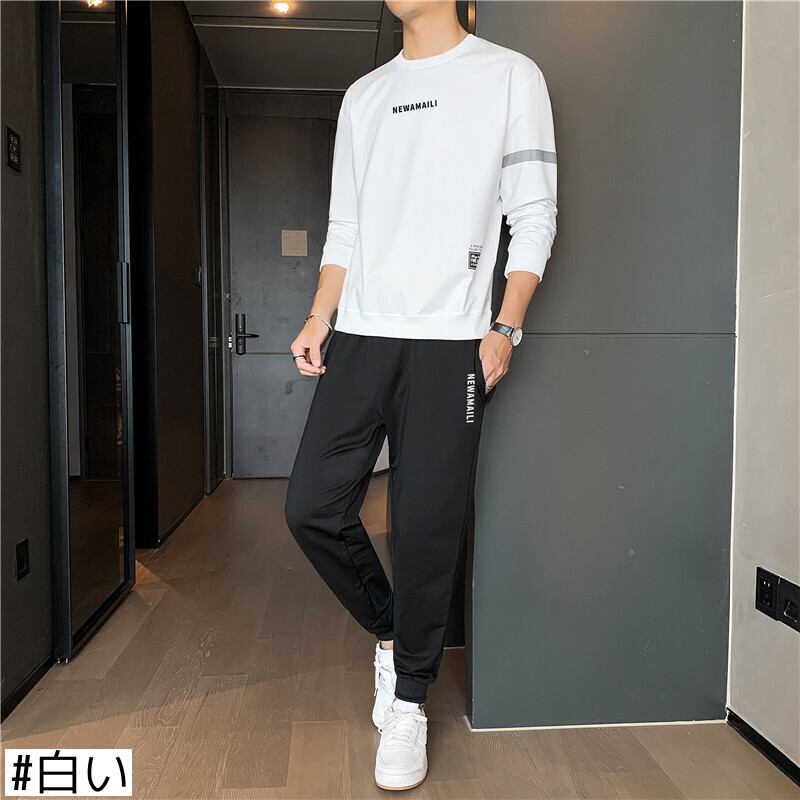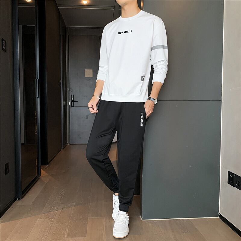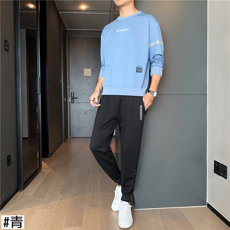 メンズ長袖スポーツスーツ2021年春新作メンズラウンドネック通気性Tシャツファッションツーピースパンツ ロング スプリング 春物 Oネック 7327022321401561