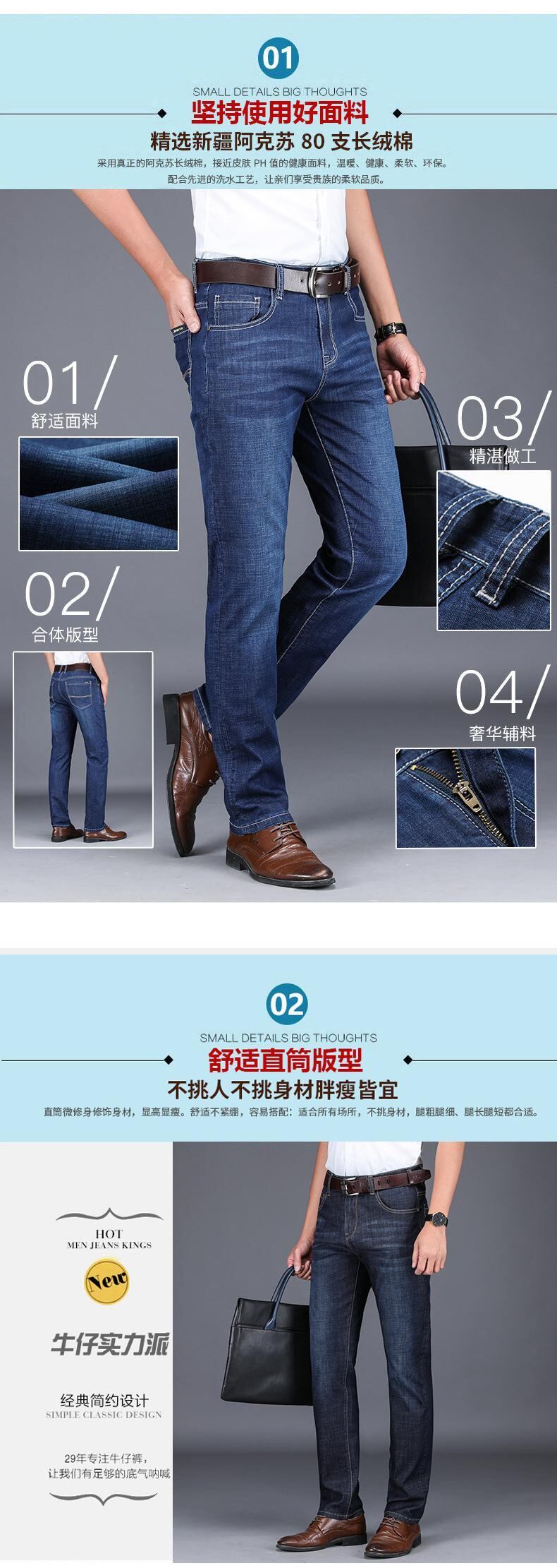 メンズジーンズ2021年春バージョンの新作ルーズラージサイズストレッチファッションカジュアルビジネスストレートロングパンツ 大きめサイズ スプリング 春物 7327090088294160