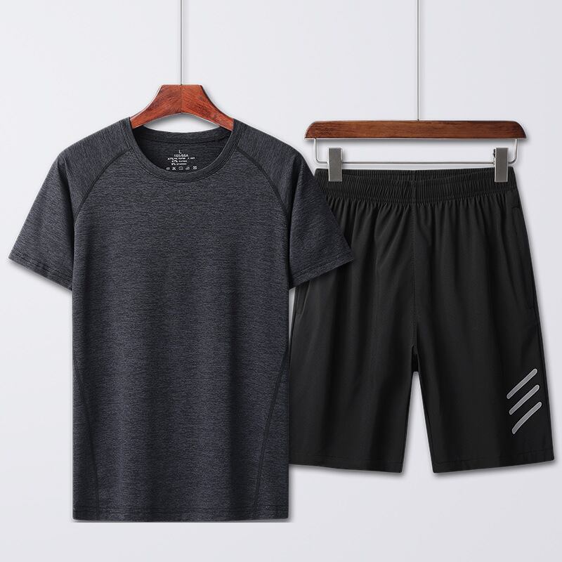 半袖スリムTシャツメンズサマーアイスシルクスポーツウェアカップルはカジュアルなルーズランニングスーツカスタムロゴを着用 夏物 7327093812023787