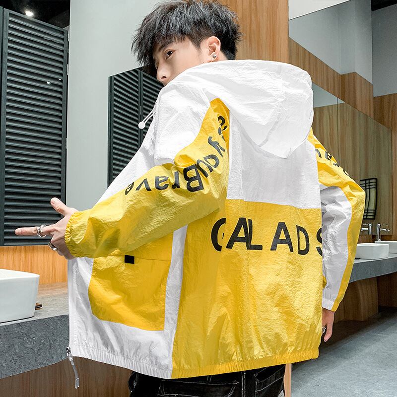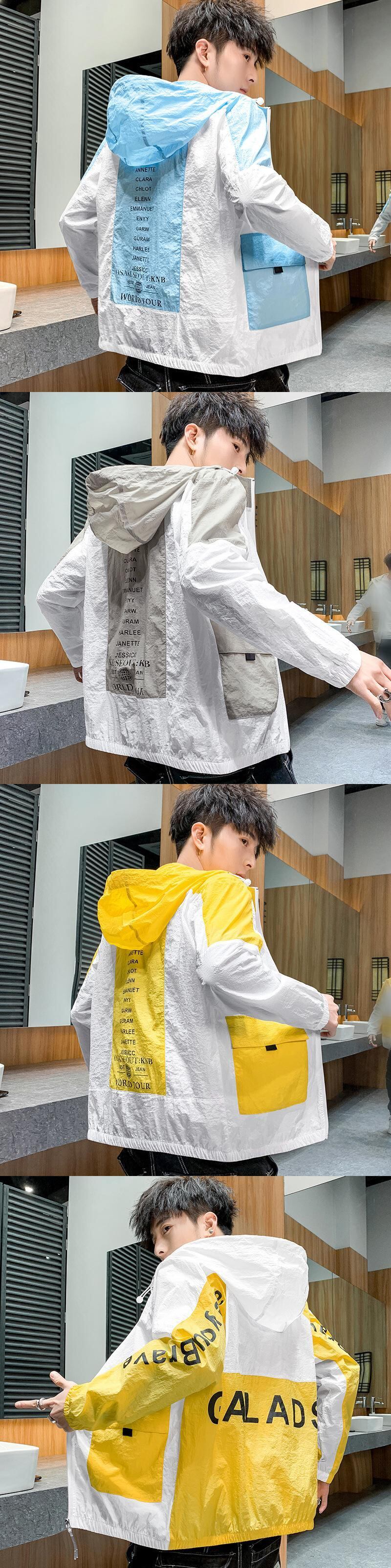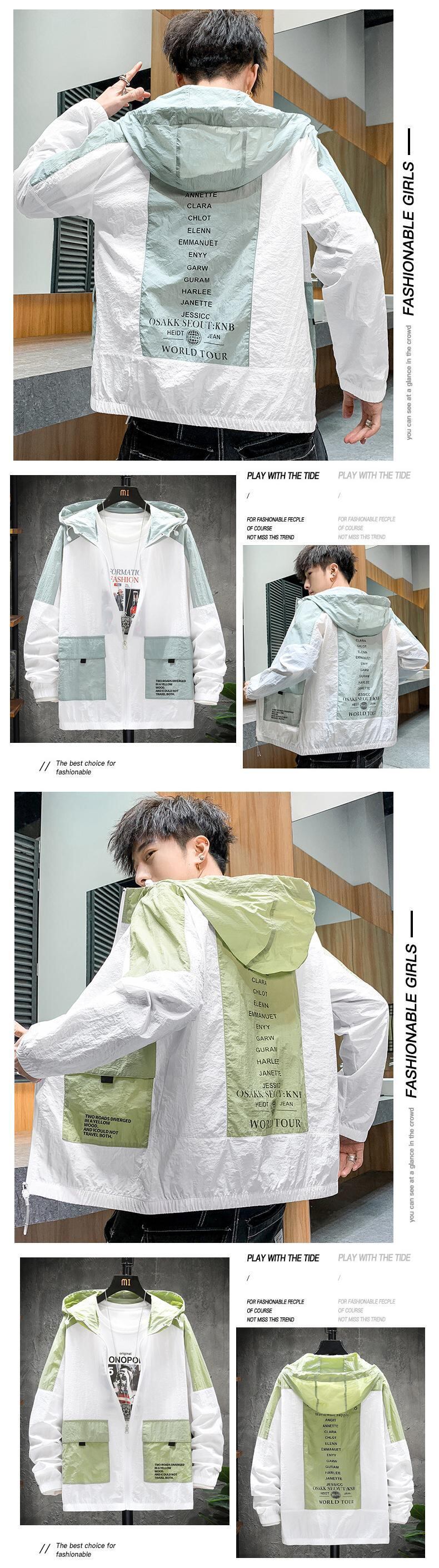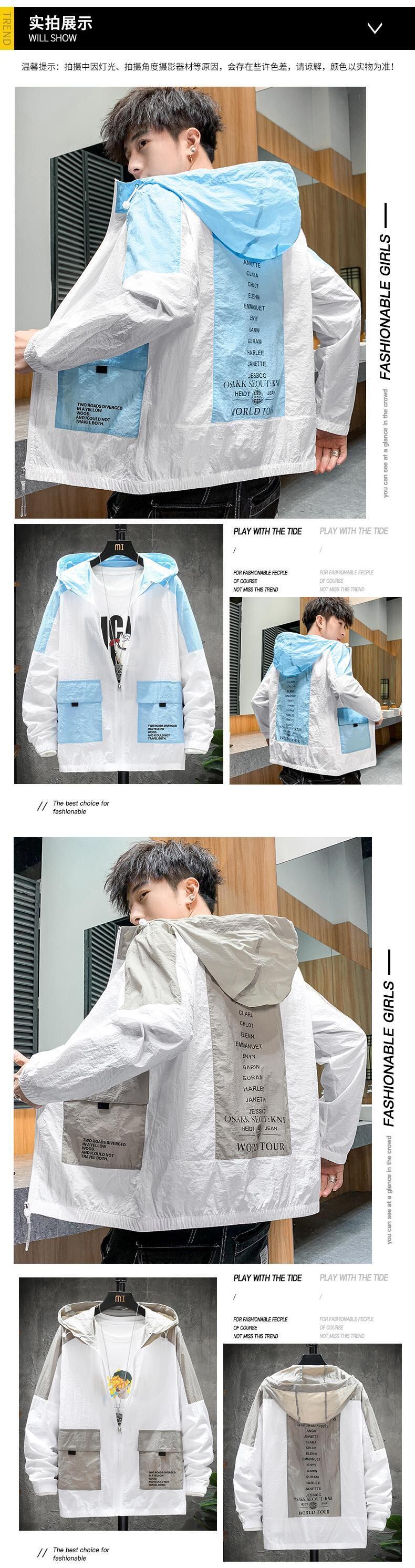 2021年夏のメンズカジュアル薄いメンズ日焼け止め服屋外釣りスキンウインドブレーカーフード付き日焼け止めジャケット サマー 夏物 7327091135933750