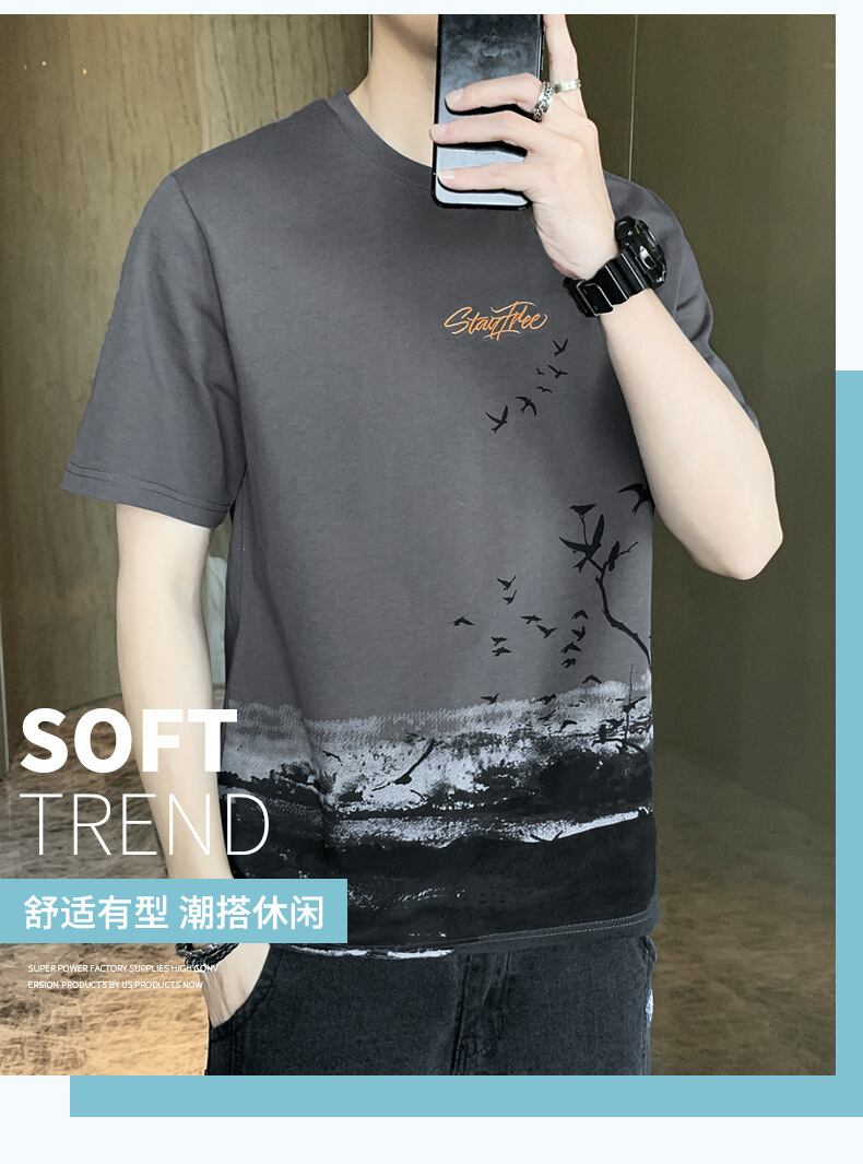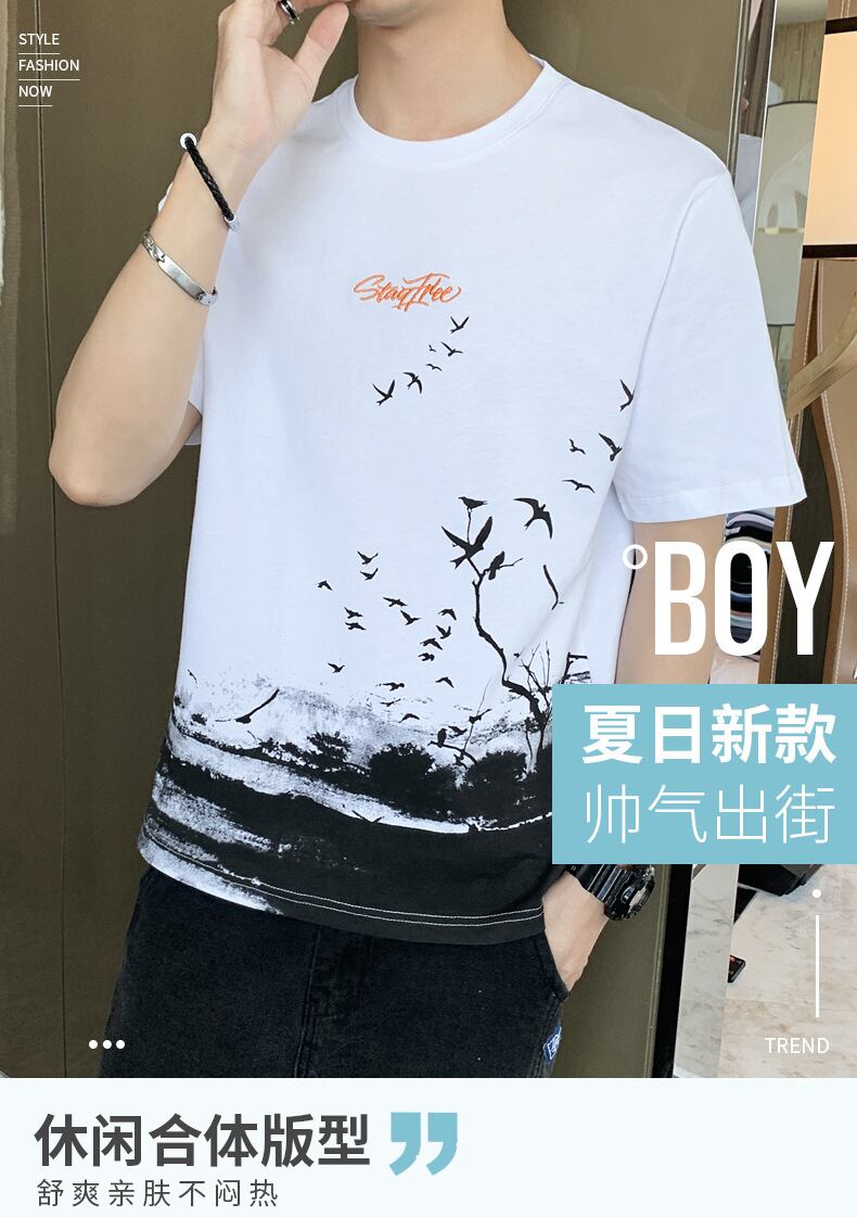 夏の新しいラウンドネックメンズ半袖Tシャツスポーツとレジャー薄片コンピオネートメンズ快適で通気性のあるトップボトミングシャツ サマー 夏物 Oネック 7327062071721605