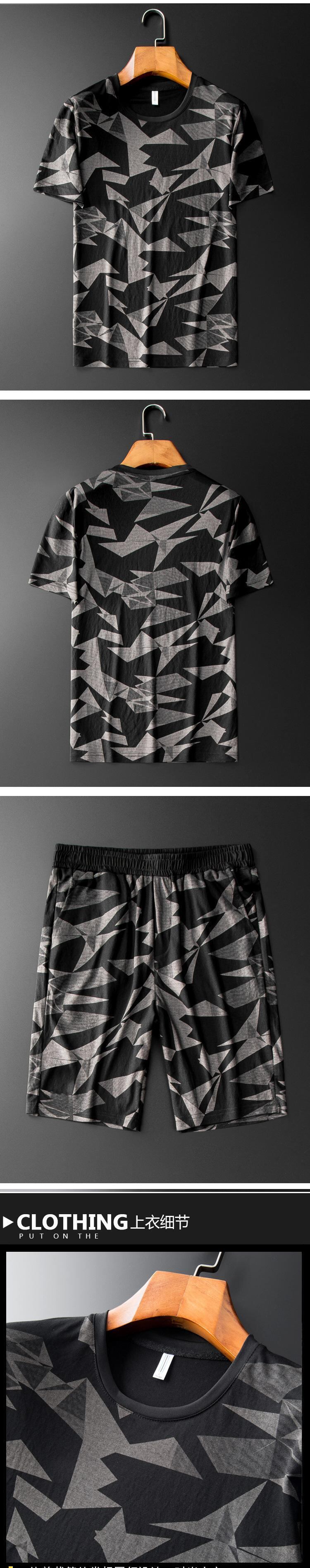 夏の新作メンズカジュアルツーピースファッションスポーツウェア半袖TシャツラウンドネックコットンTシャツメンズスポーツスーツ サマー 夏物 Oネック 7327018631715233