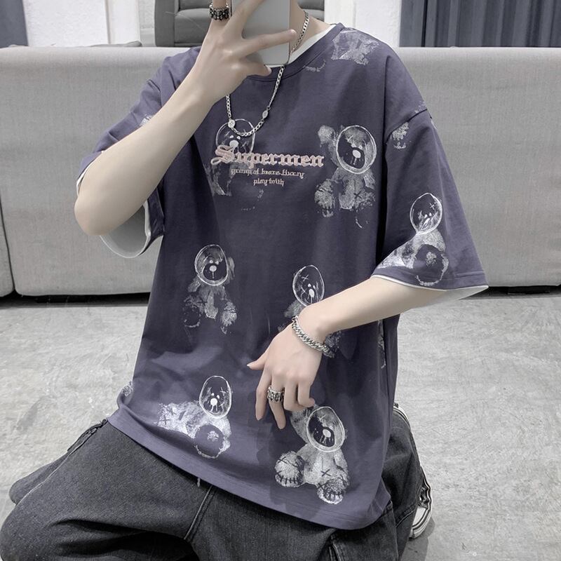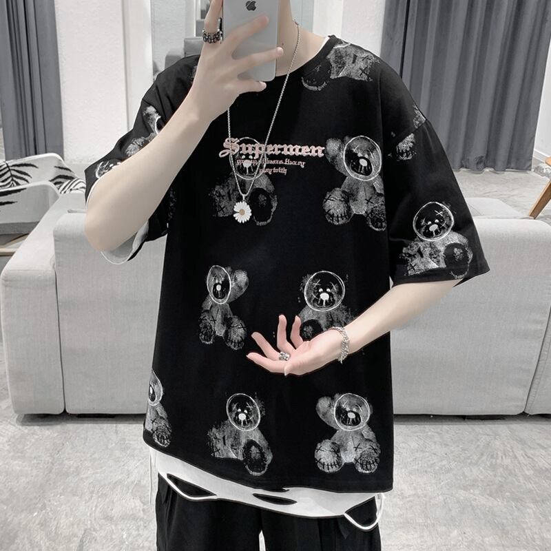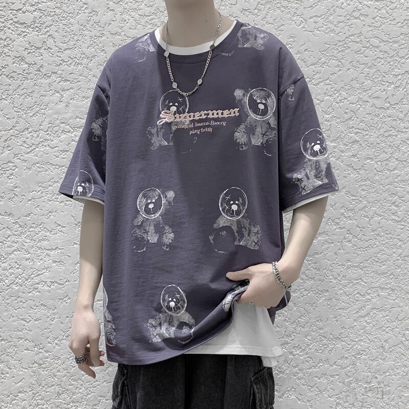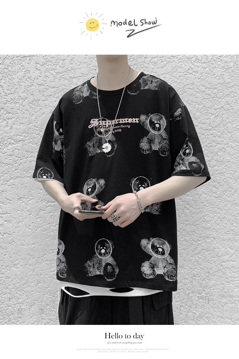 メンズTシャツ2021サマーユース漫画ルーズ5点スリーブユース人気メンズTシャツ 夏物 7327052190501867