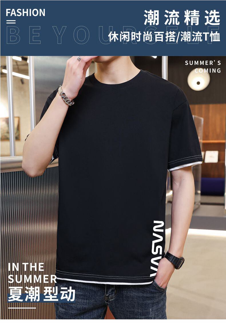 夏の新トレンドメンズ半袖Tシャツ若い学生が偽のツーピースTシャツ半袖夏の思いやりのある卸売 サマー 夏物 7327055436035844