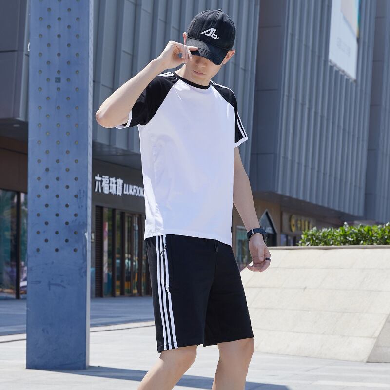 夏の半袖Tシャツメンズカップルはラウンドネックファッション屋外半袖5ポイントツーピーススポーツとレジャースーツを着用します サマー 夏物 Oネック 7327049940615870