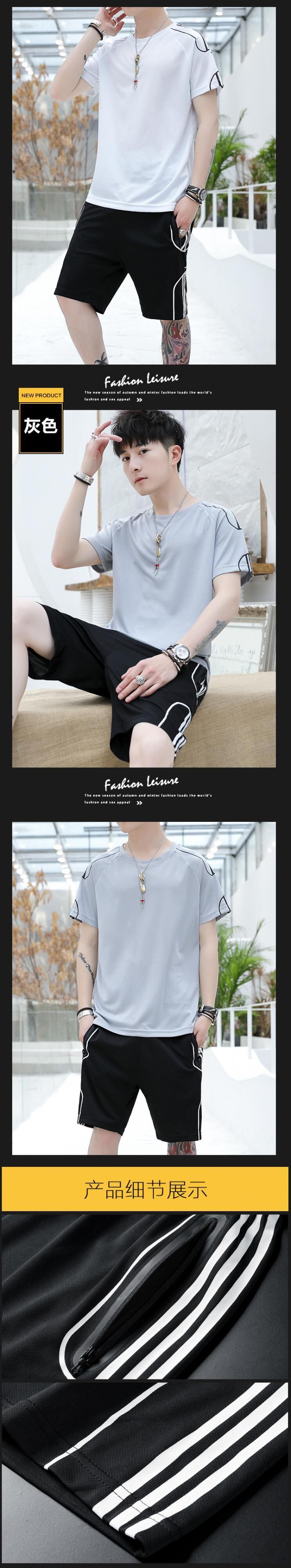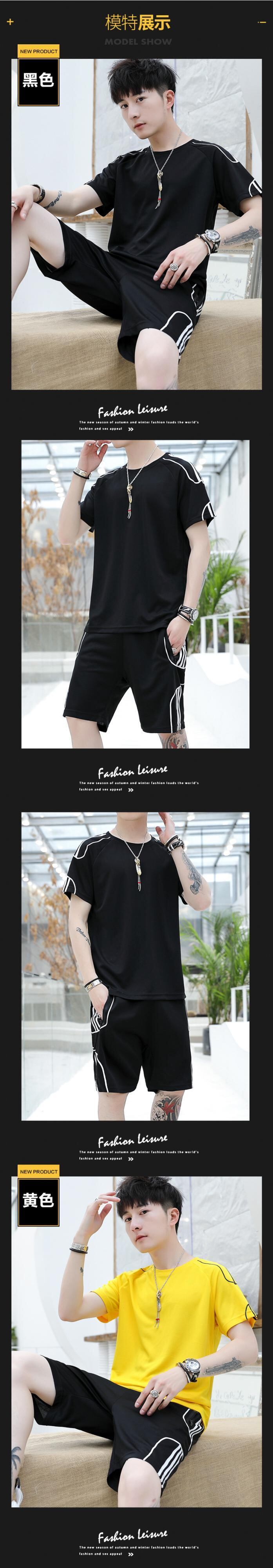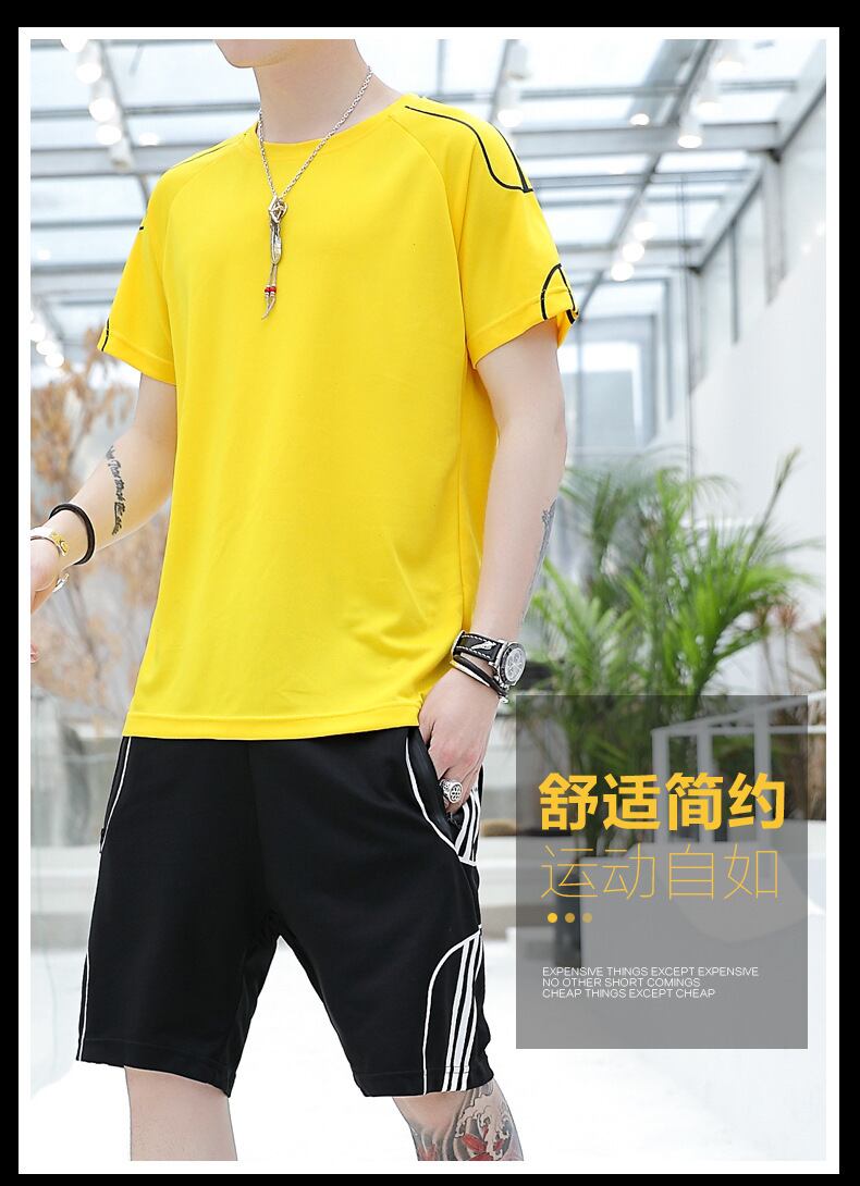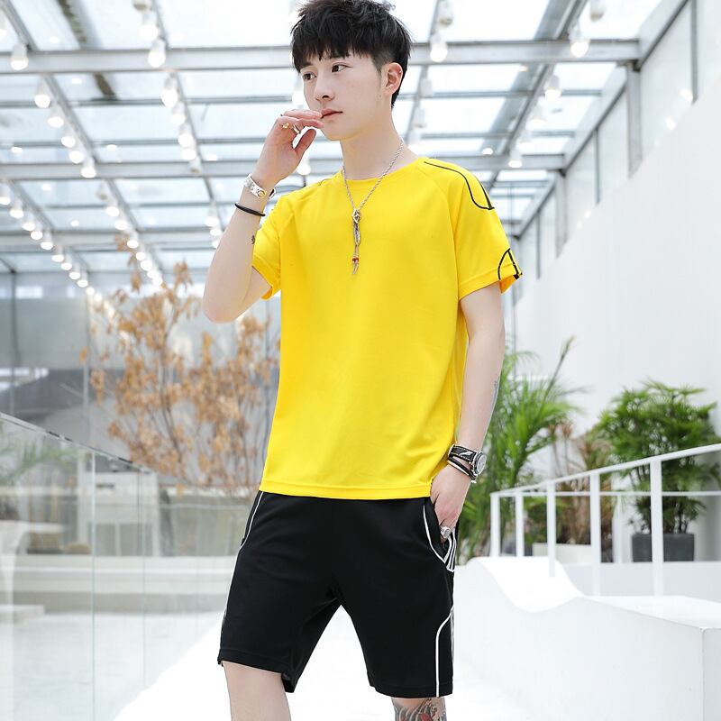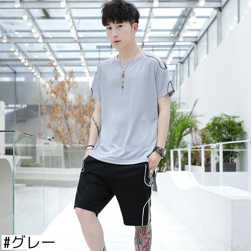 2021年夏メンズラウンドネックカジュアルスポーツスーツスタイル通気性ユースショーツツーピースメンズ半袖Tシャツ サマー 夏物 ブルマー Oネック 7327099466544712