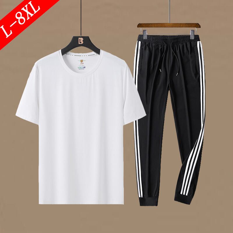 2021年夏の新作メンズ半袖TシャツツーピースユーストレンドアイスシルクTシャツスポーツメンズカジュアルスーツ サマー 夏物 7327013057797550