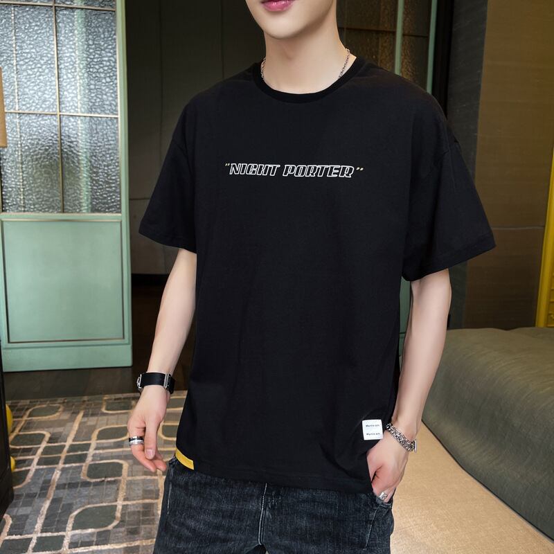 メンズサマーニューカジュアル半袖Tシャツ男性バージョンルーズ薄切片ユーストレンドメンズTシャツボトミングシャツ 夏物 7327039711061647