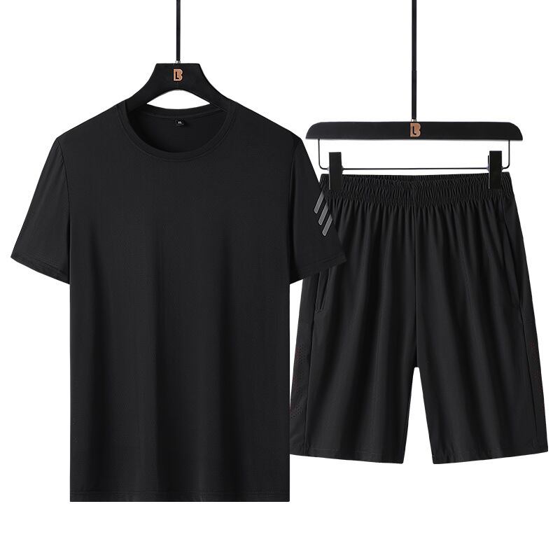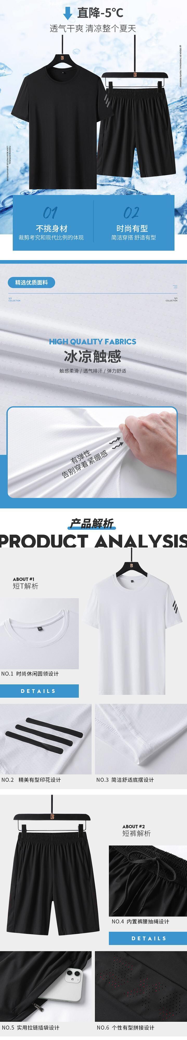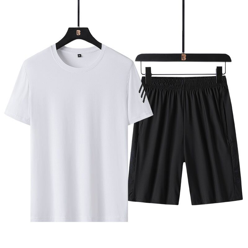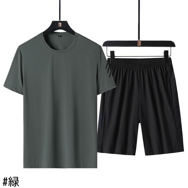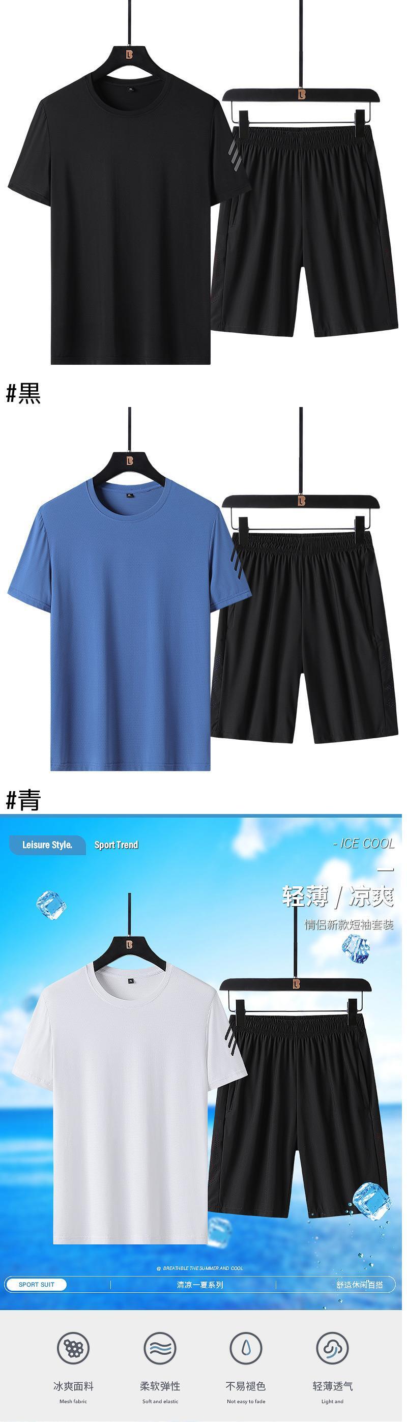 2021年夏メンズ薄手半袖スーツアイスシルク通気性ショーツカジュアルランニングフィットネスカップルメンズツーピーススーツ サマー 夏物 ブルマー 7327052071094595