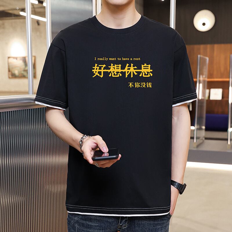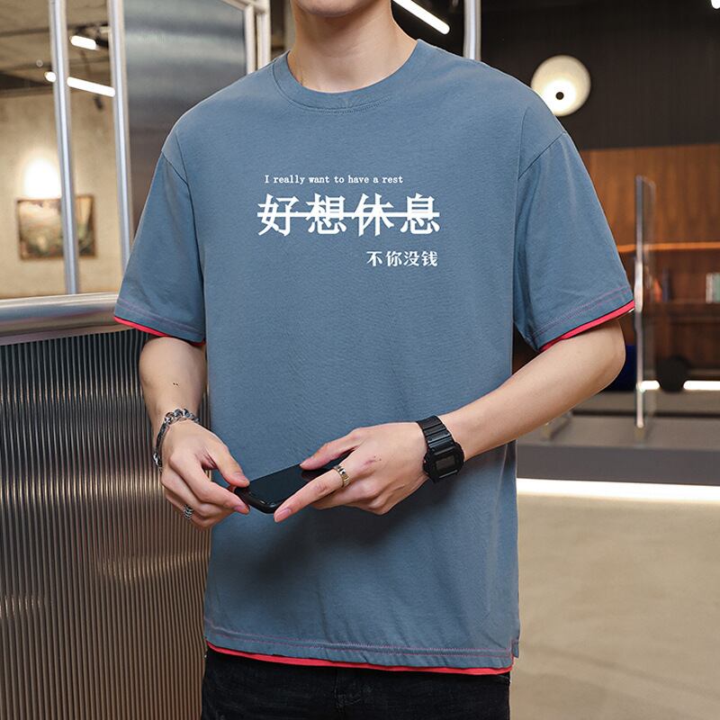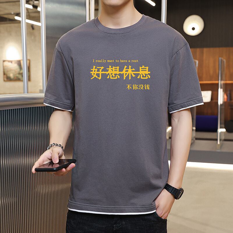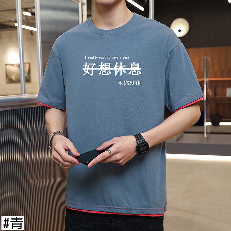 メンズ半袖Tシャツコットンタイドブランド半袖夏トレンドコンピネイト自己啓発パーソナリティファッション青春服男性Tシャツ サマー 夏物 7327029300858388