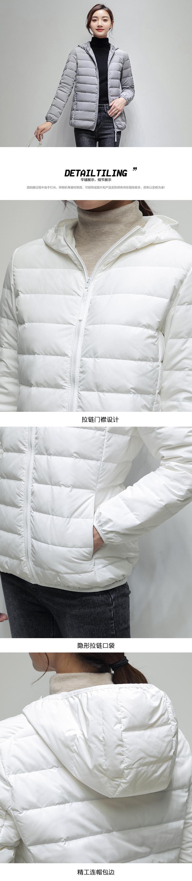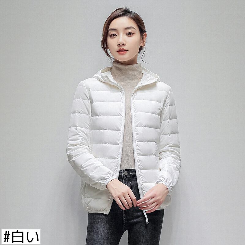 冬の新しい白いダックダウンジャケットレディースカジュアルプラスサイズレディース軽量フード付きウォームショートジャケット ホワイト 大きめサイズ ウィンター 冬物 7327093075236884