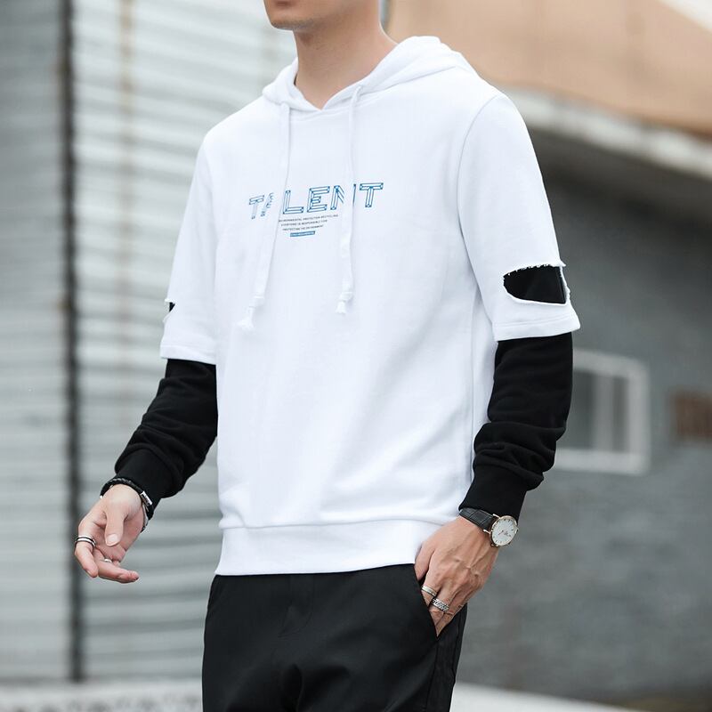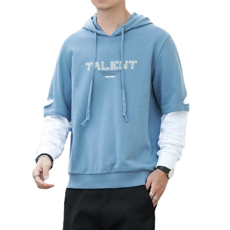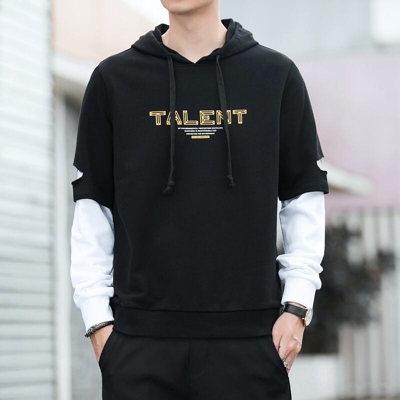 タイドブランドのセーターメンズ秋新トレンド学生フード付き長袖シャツフェイク2ルーズ長袖メンズセーター ロング オータム 秋物 7327039077123338