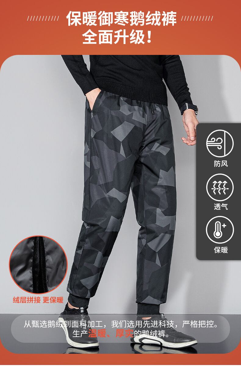 グースダウンスラックスメンズ2021冬ストレッチ暖かさレギンスパンツユーストレンドカモフラージュメンズダウンパンツ紳士服 ウィンター 冬物 7327044032500681