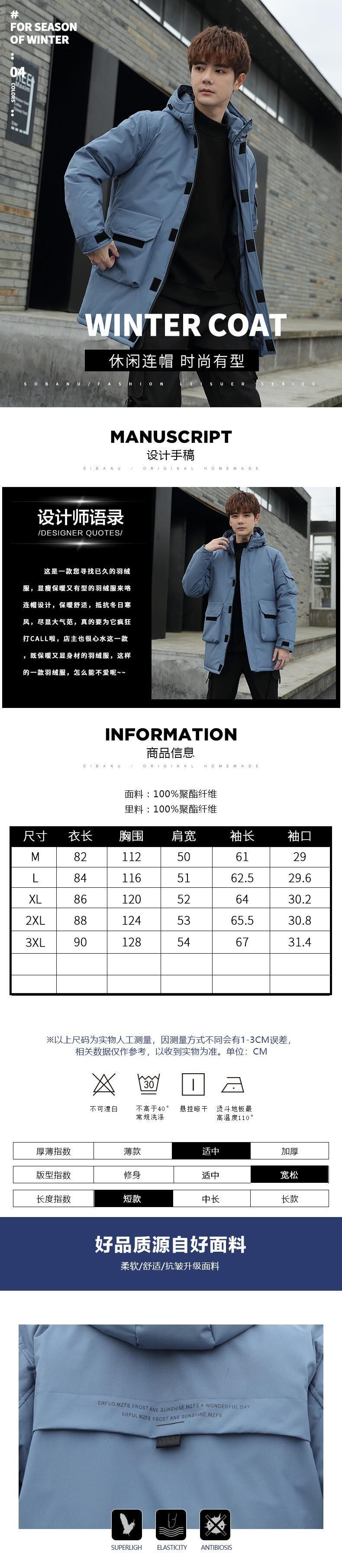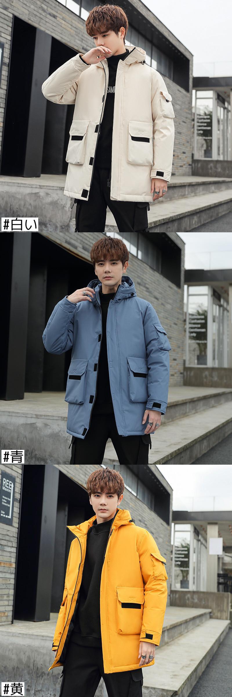 2021年冬の新作メンズダウンジャケット若いメンズミドル丈カジュアルフード付き厚手のウォームダウンジャケット ウィンター 冬物 7327051999299580
