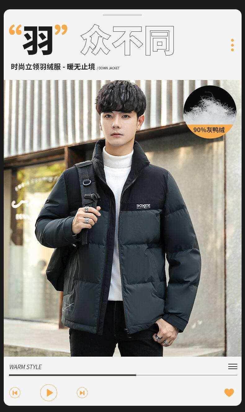 メンズダウンジャケット2021新しい冬のカジュアルグレーダックダウンジャケット学生スタンドアップカラーウォームショートダウンジャケット男性 ウィンター 冬物 732702651535386