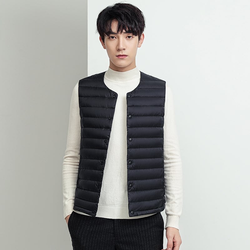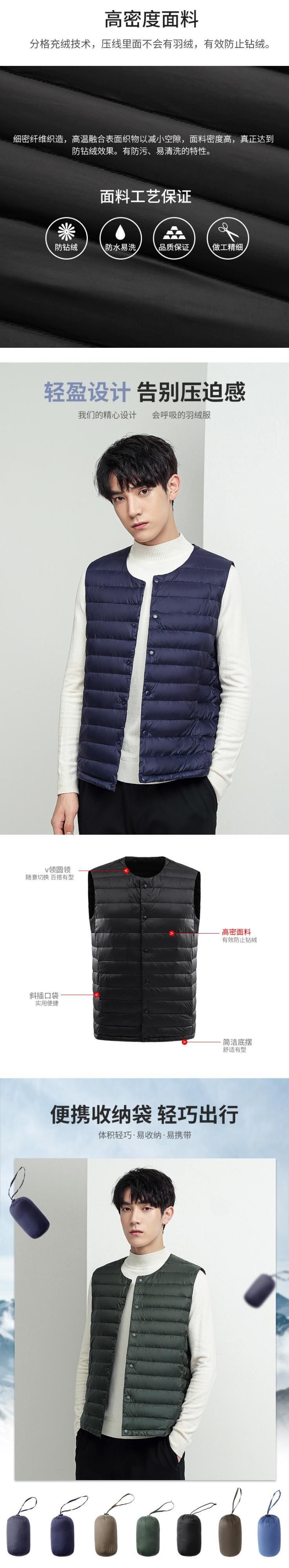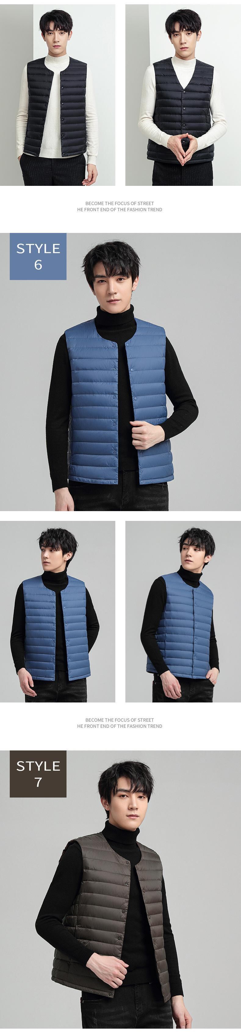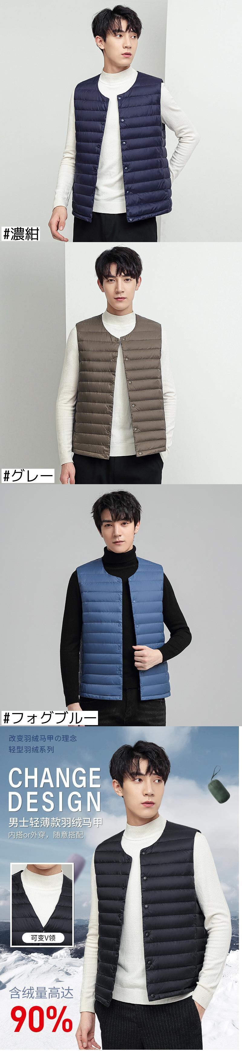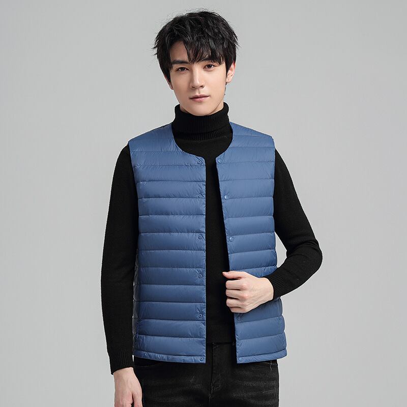 秋冬メンズベストダウンジャケットベストライトホワイトダックダウンスタイルスリムフィットカラーデュアルユースヤングメンズジャケット オータム 秋物 ウィンター 冬物 7327012326223173