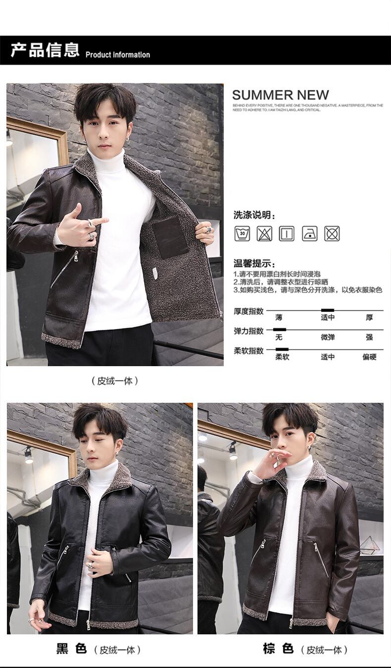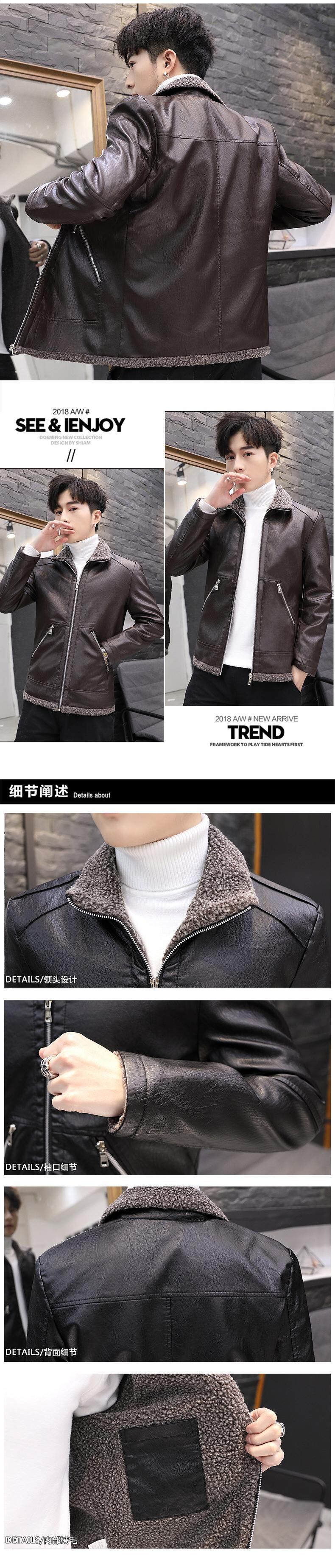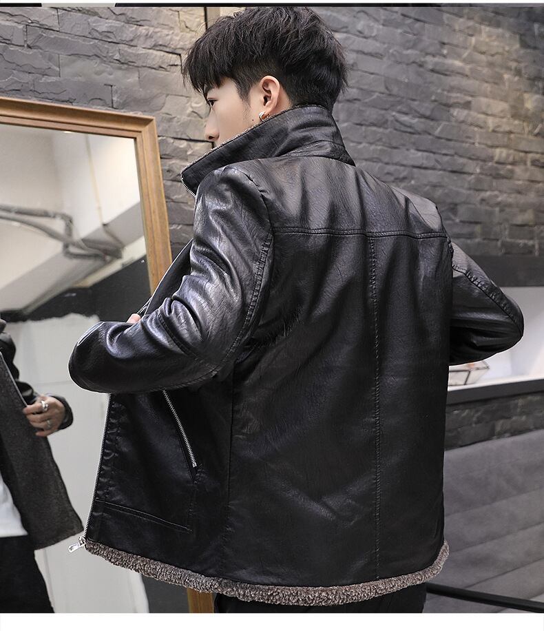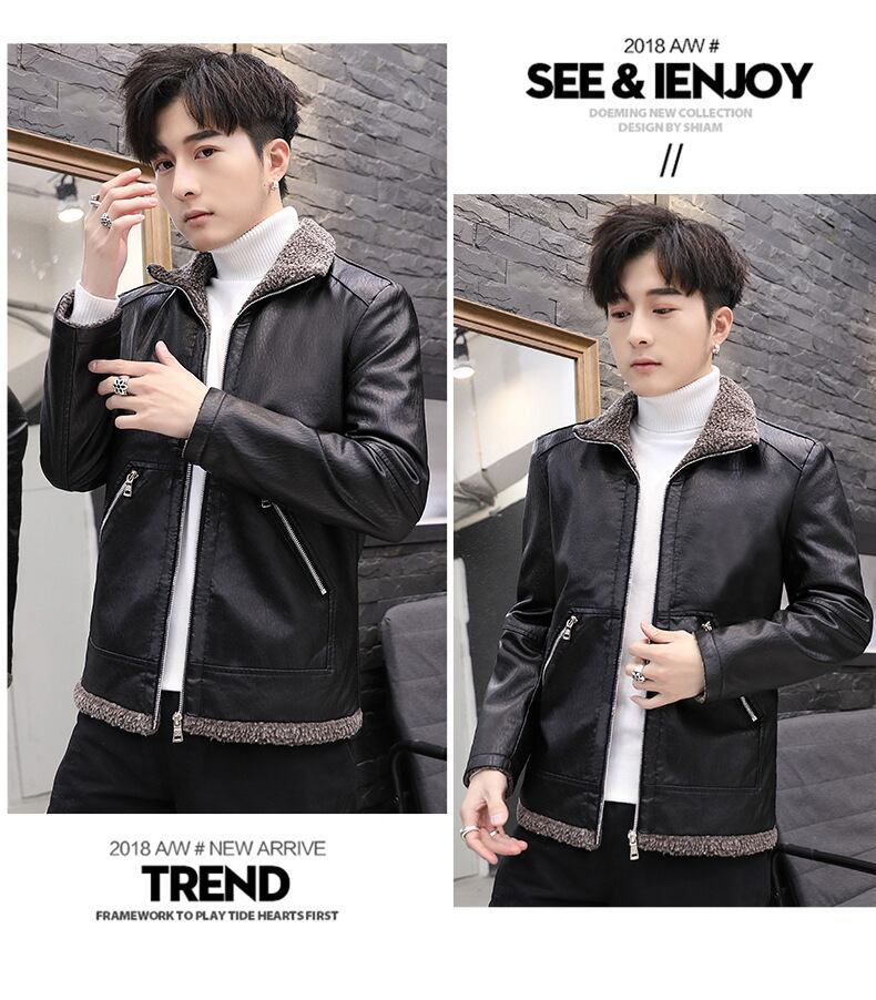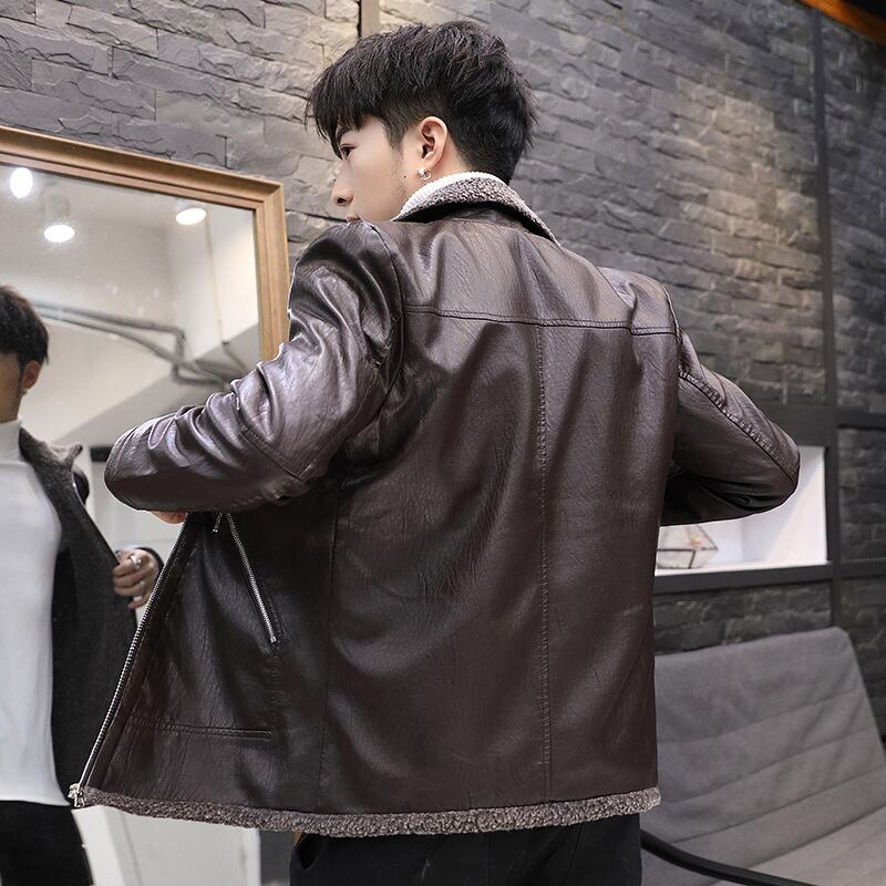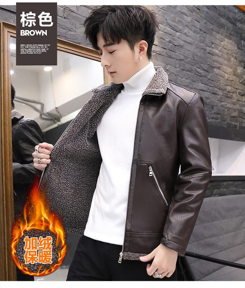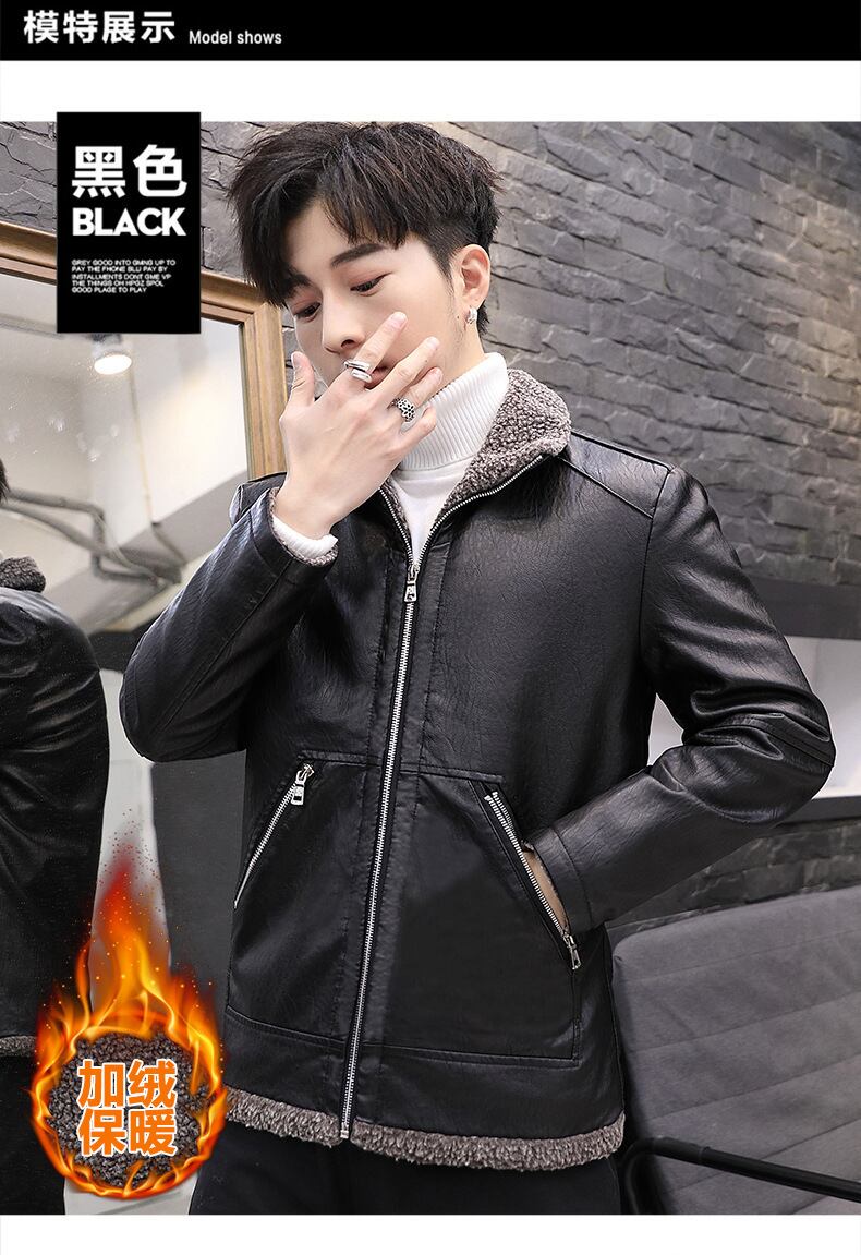 メンズレザーウィンターバージョンスリムメンズハンサムトレンディカジュアルプラスフリースウォームジャケットメンズPUレザージャケット 冬物 7327098307189552