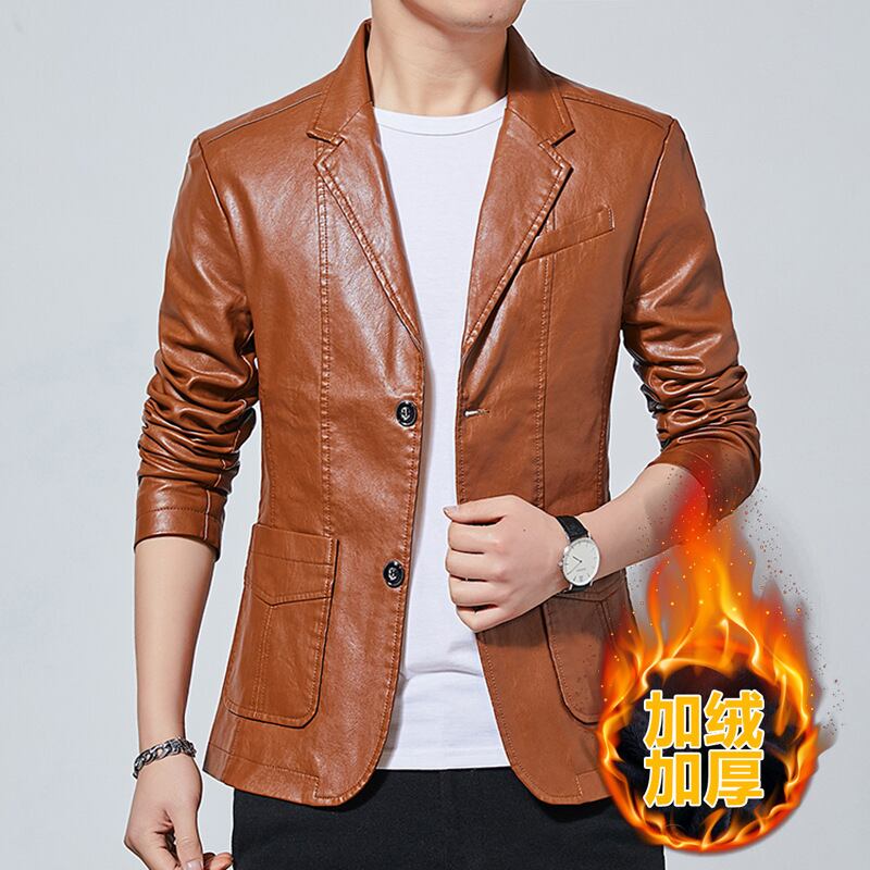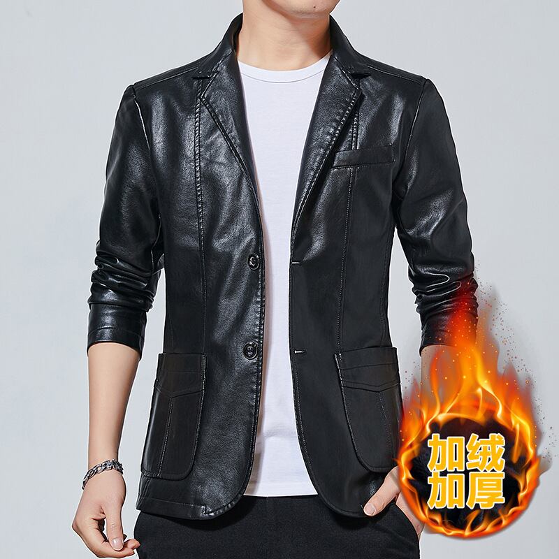 2021年ウィンターラペルメンズレザースリムトレンドユースシックスーツレザージャケットショートプラスフリースメンズジャケット 冬物 7327089046355803