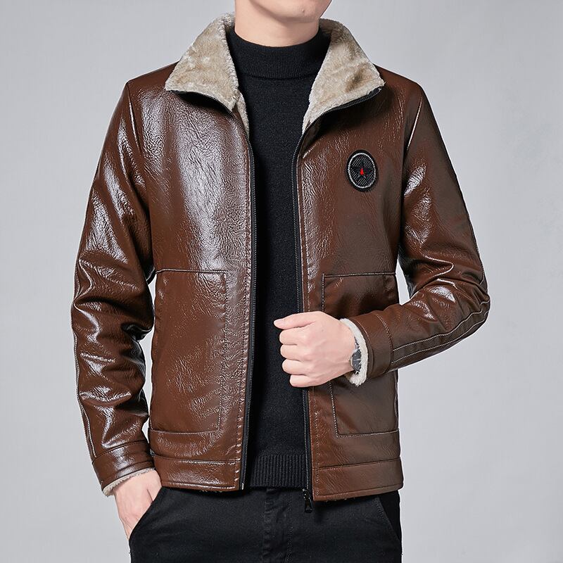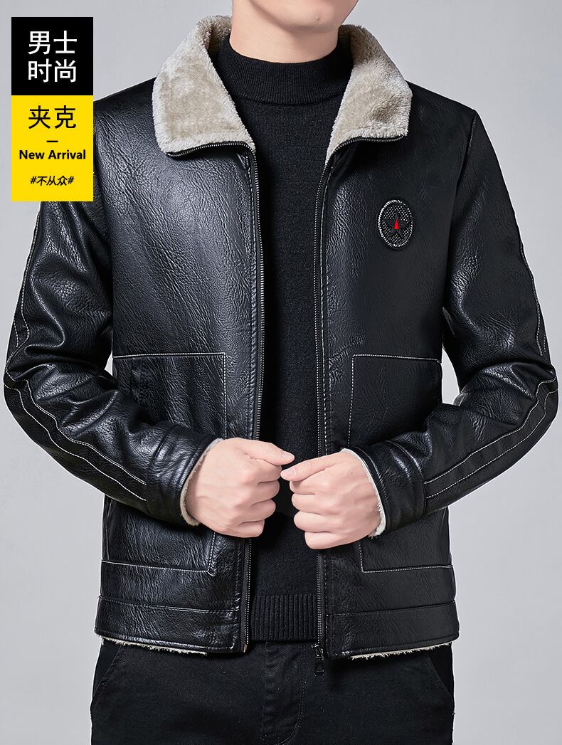 ウィンターレザーメンズニュースタイルユース自家栽培ラペルプラスベルベットメンズレザーファーコートメンズレザージャケット 冬物 7327022063229596