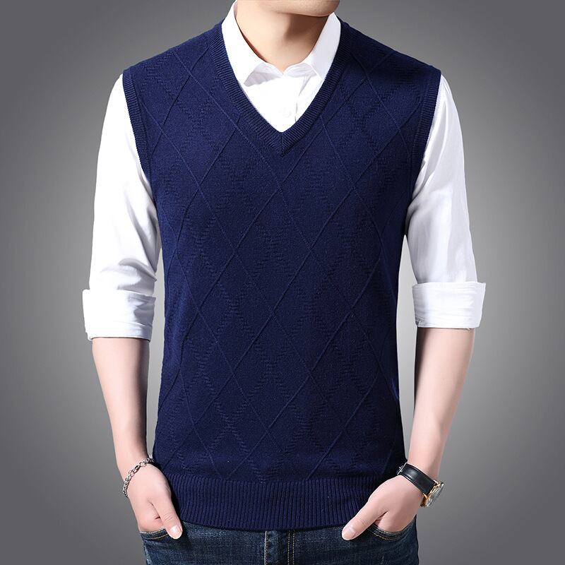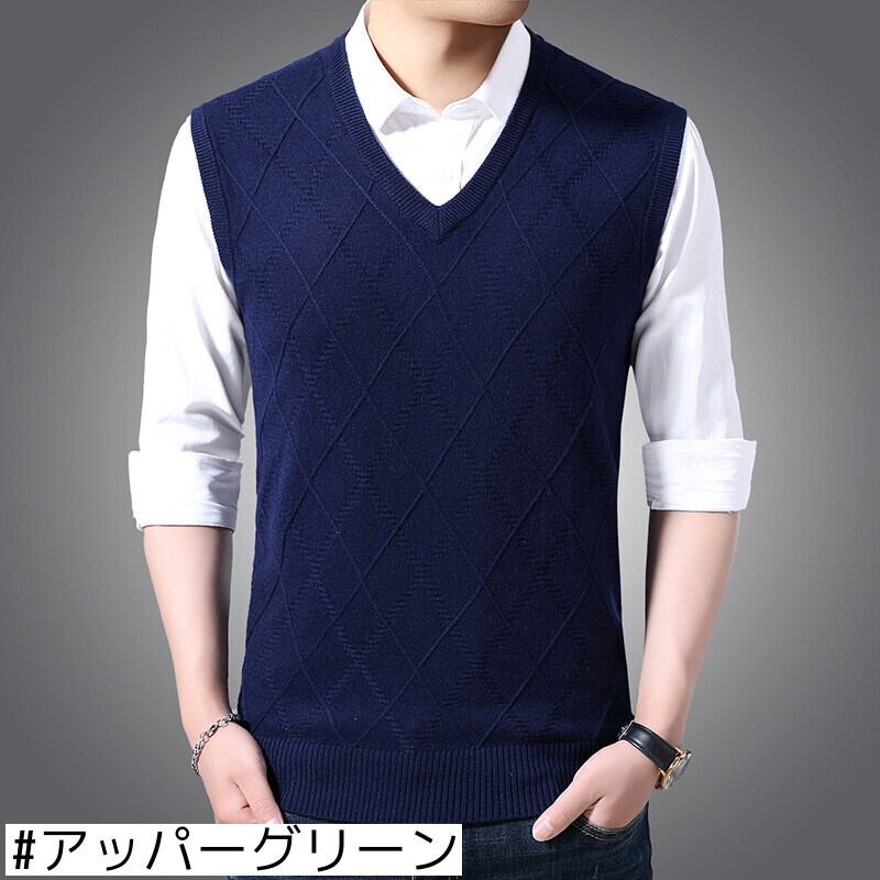 セーターメンズベストVネックボトミングセーターノースリーブプルオーバーベストウィンターレジャーメンズウールセーター 冬物 7327015009311990