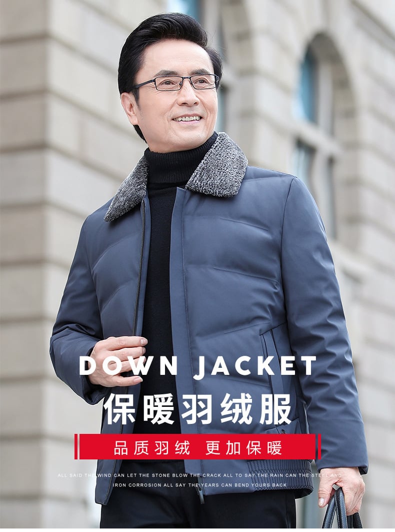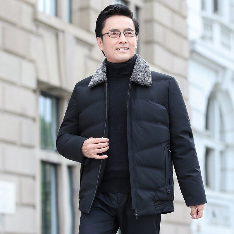 冬のメンズファッションメンズダウンジャケットショート中高年ラペルホワイトダックダウンジャケット父服男性ジャケット ウィンター 冬物 7327028375758351