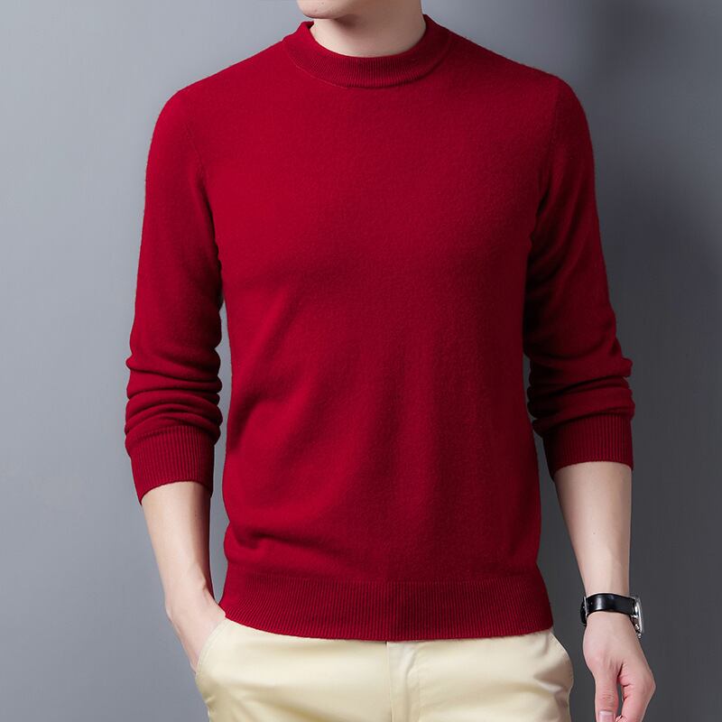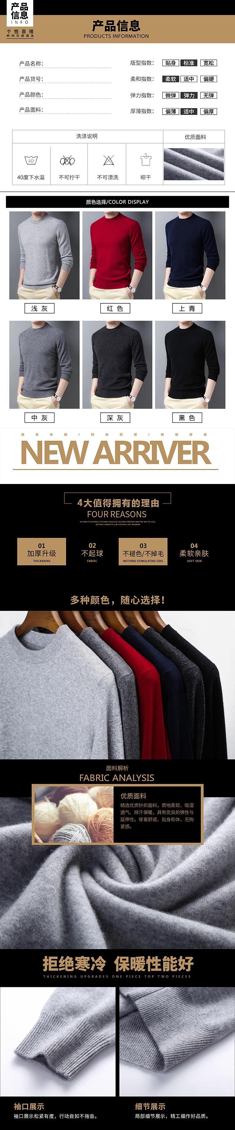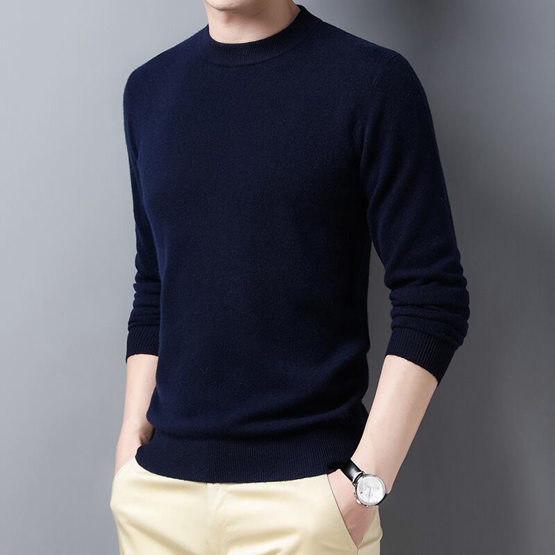 2021年ルーズウール厚手メンズピュアウールセーターラウンドネックウィンターカジュアルファッションセーターメンズニットセーター 冬物 Oネック 7327079426181934