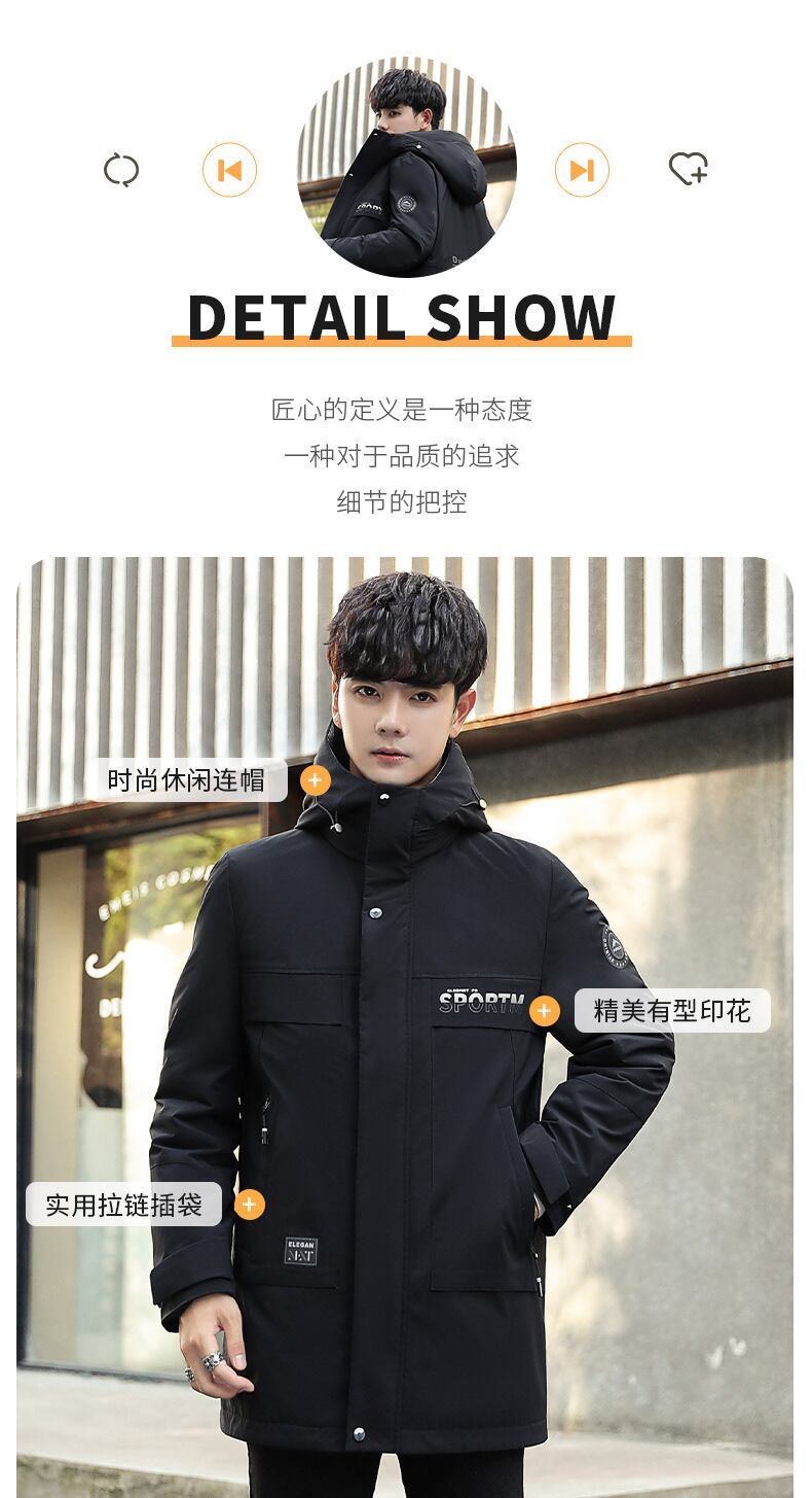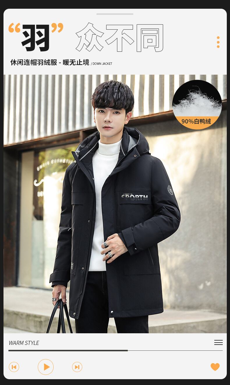 2021年冬の新作メンズダウンジャケットユースミドル丈カジュアルフード付き厚手ウォームダウンメンズジャケット ウィンター 冬物 7327097345334687
