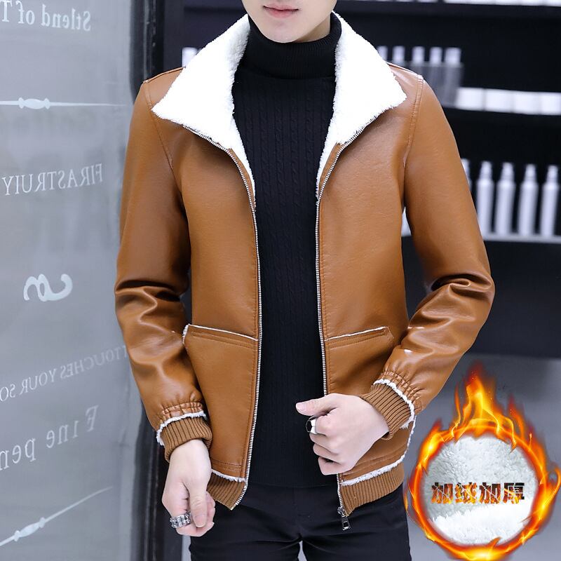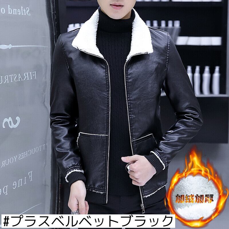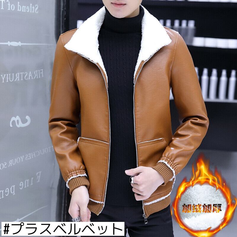 冬のニューメンズジャケットユースバージョンプラスベルベットレザージャケットメンズカジュアルファーワンピースメンズスリムジャケット ウィンター 冬物 7327086651627074