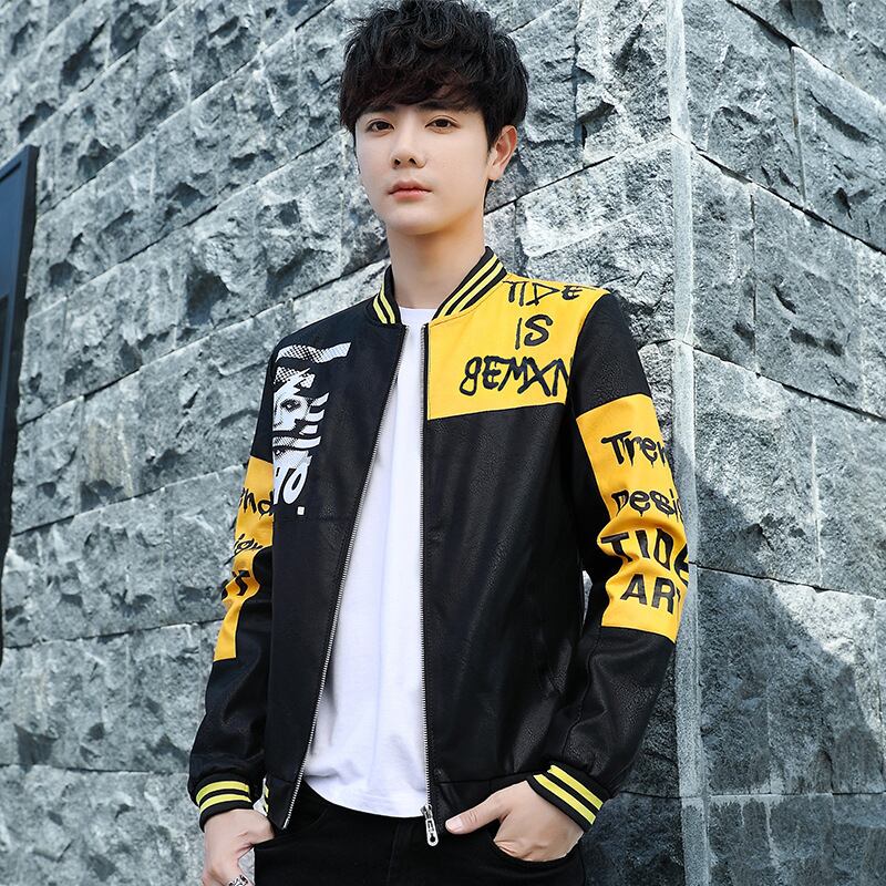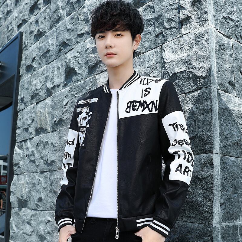 2021年冬のカジュアルメンズレザージャケットスリムフィットバイクウェアユースハンサムレザージャケットメンズスタンドアップカラージャケット ウィンター 冬物 7327025176902009