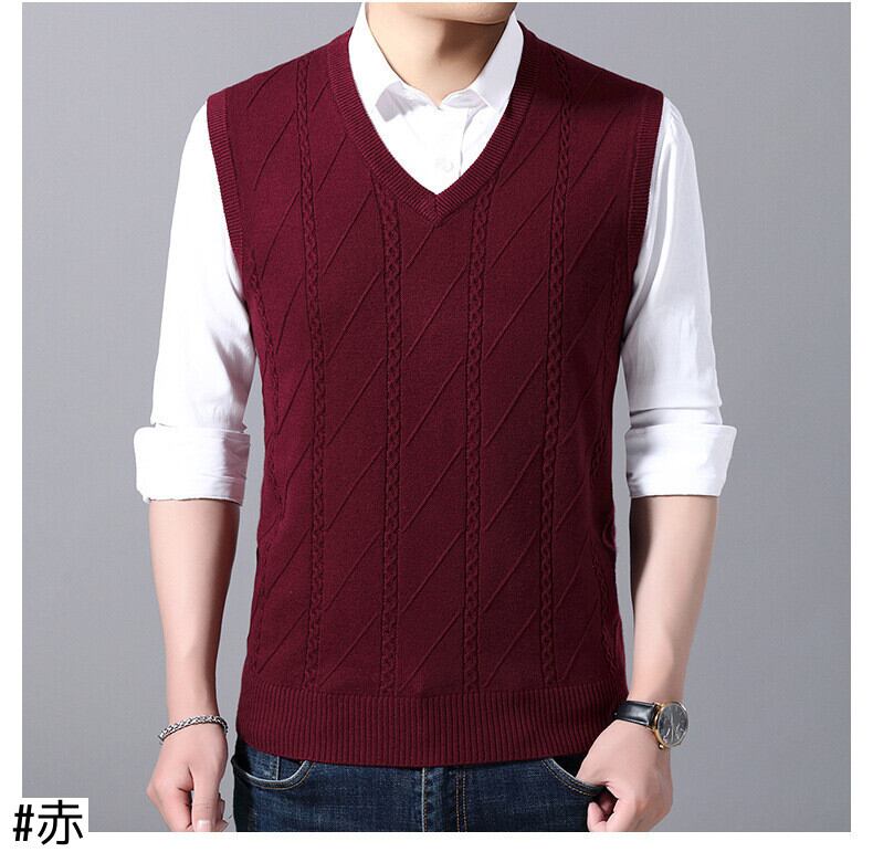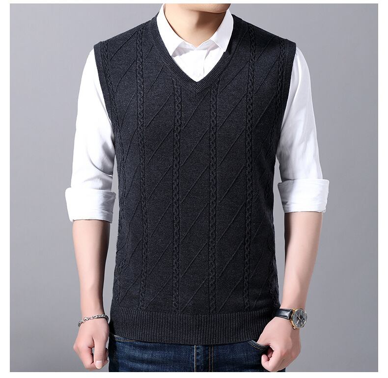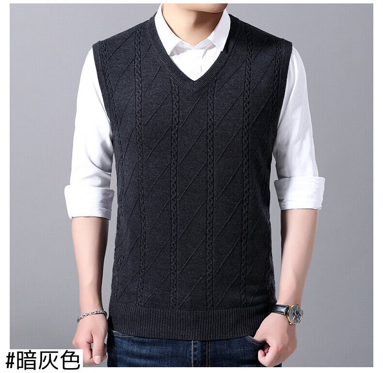 トレンディな若者向けの冬のメンズノースリーブセーターベストベストVネックウールベスト男性ジャケットセーター ウィンター 冬物 732706853967792