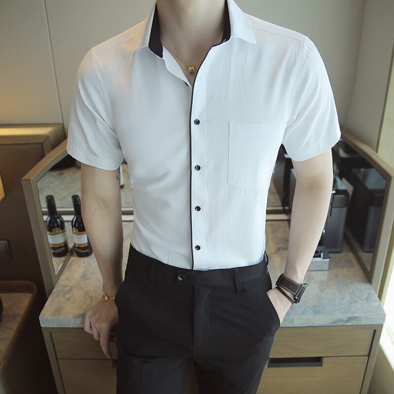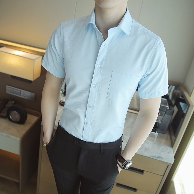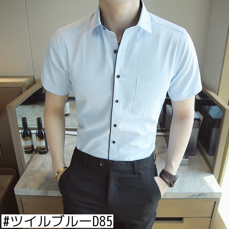 2021年夏半袖メンズシャツストライプユース半袖メンズシャツファッションビジネスストレッチシャツ サマー 夏物 7327041328432795