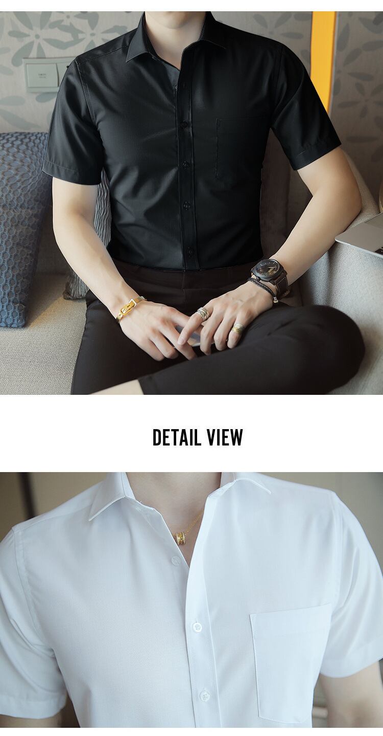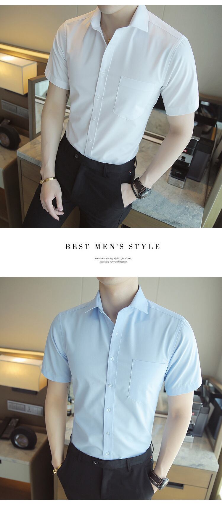 メンズビジネスカジュアル半袖シャツスリムノンアイアン無地シャツ夏のメンズプロのマルウェアトレンド サマー 夏物 ソリッドカラー 7327047307660114