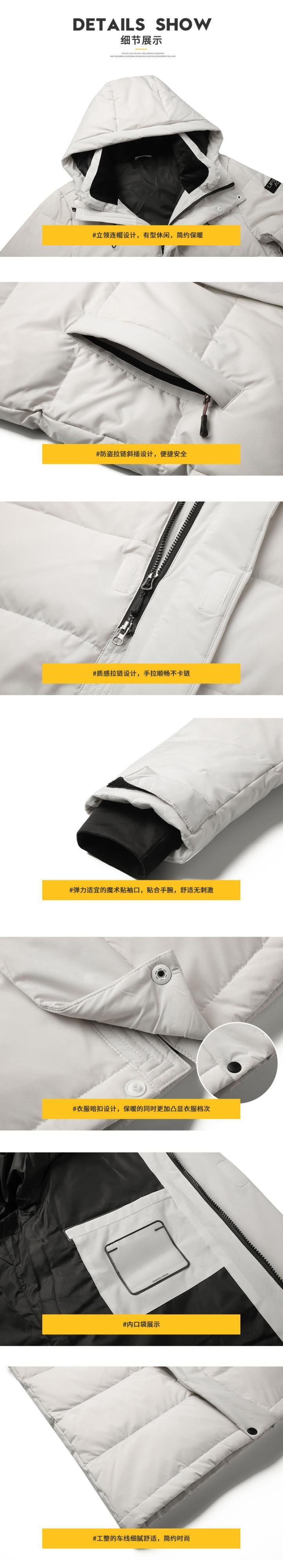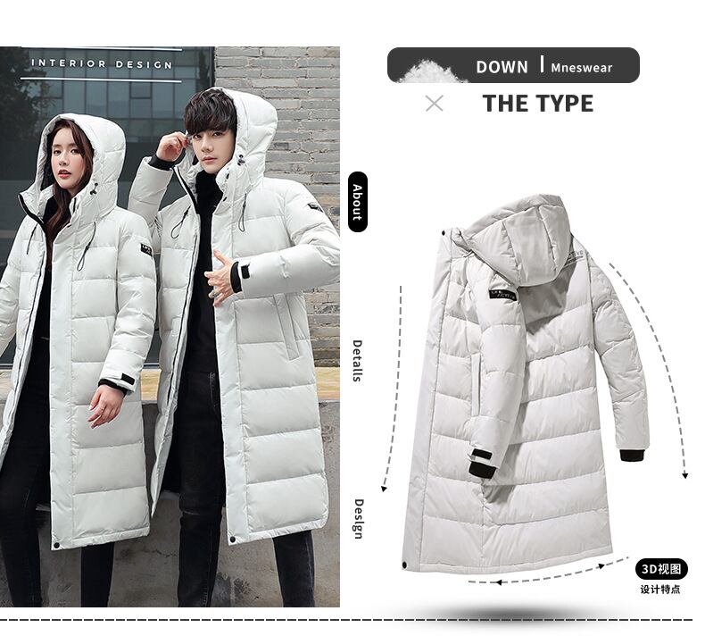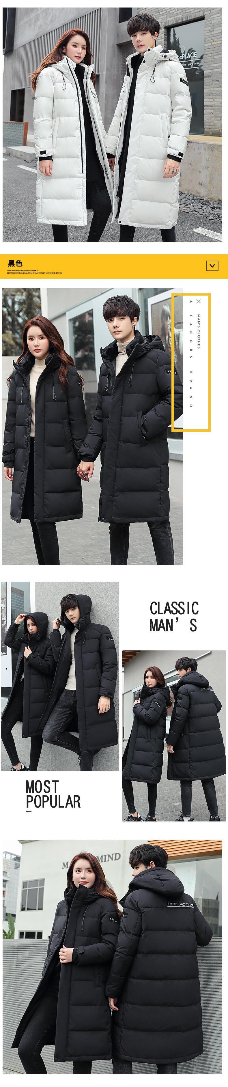 メンズ2021冬メンズミドル丈ダウンジャケットホワイトダックダウンフード付きユースルーズカップルメンズとレディースジャケット ウィンター 冬物 7327075290706081
