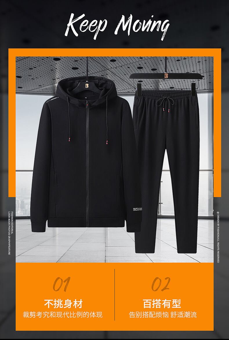 春メンズスポーツスーツバージョンカジュアルモーニングランニングフィットネススリムフード付きセーターメンズパンツツーピースセット スプリング 春物 7327065460612606