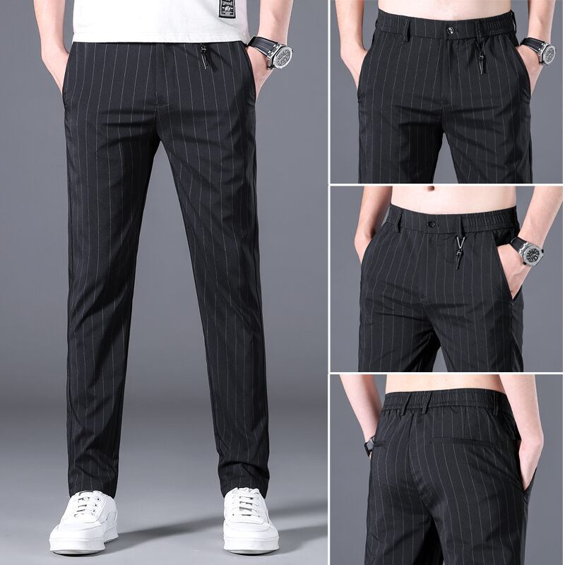 夏のメンズロングパンツストライプ多用途弾性ウエストルーズストレートチューブ2022ユースシンパンツ エラスティック 伸縮 サマー 夏物 7327021987342906
