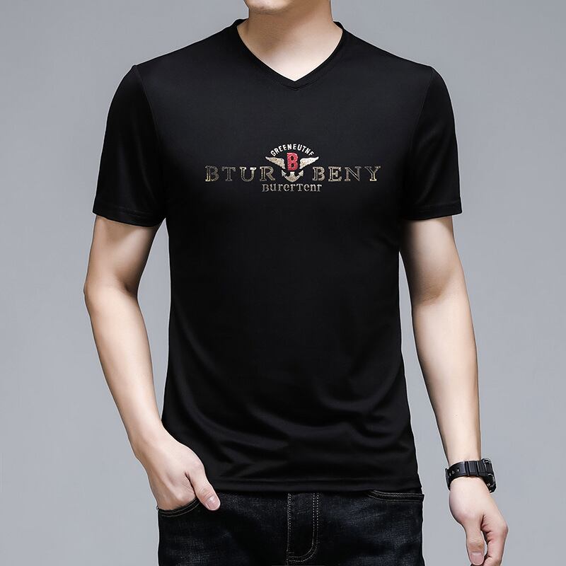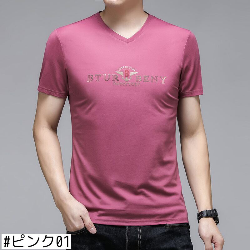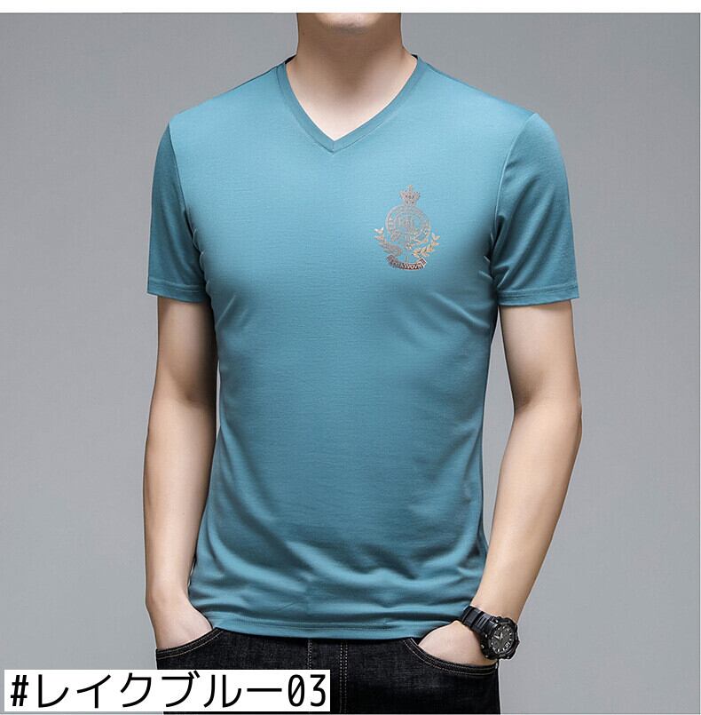 2022年夏のアイスシルクメンズVネック半袖Tシャツスリムトレンドユースカジュアル半袖ボトミングシャツオールマッチトップ サマー 夏物 7327091325823956