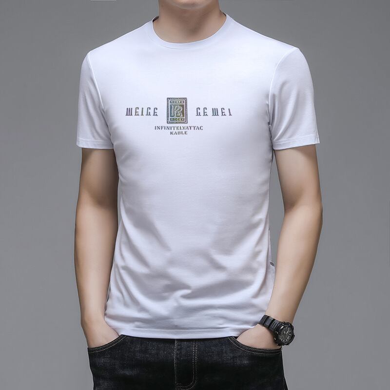 2022年新作カジュアルメンズTシャツバージョン薄手ユースラウンドネックTシャツサマーアイスシルク半袖メンズTシャツ卸売 夏物 Oネック 7327077001007315