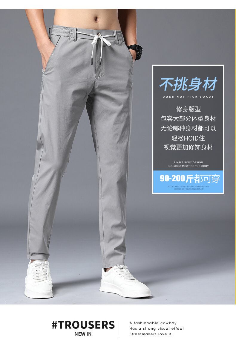 2022年夏のアイスシルクパンツメンズエラスティックパンツユーススポーツパンツトレンドオールマッチメンズカジュアルパンツ薄手 伸縮 サマー 夏物 7327020513273475