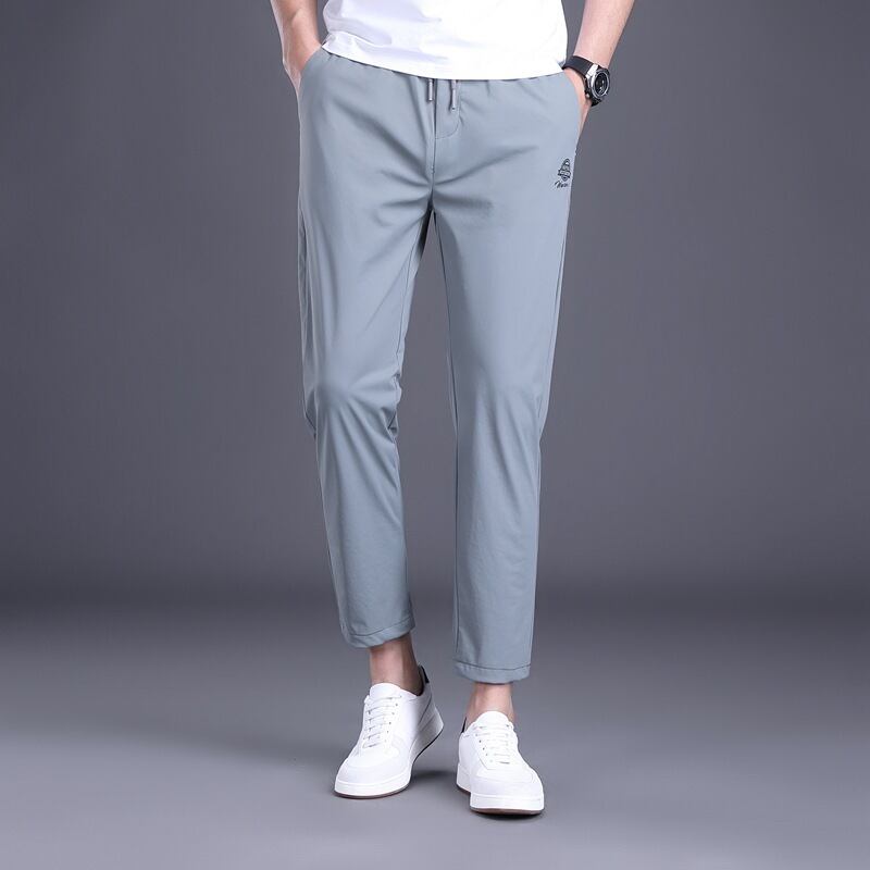 2022年夏の新作メンズカジュアルパンツルーズストレートシンセクションアイスシルクトレンドメンズパンツ伸縮性通気性パンツ エラスティック サマー 夏物 7327062875853521