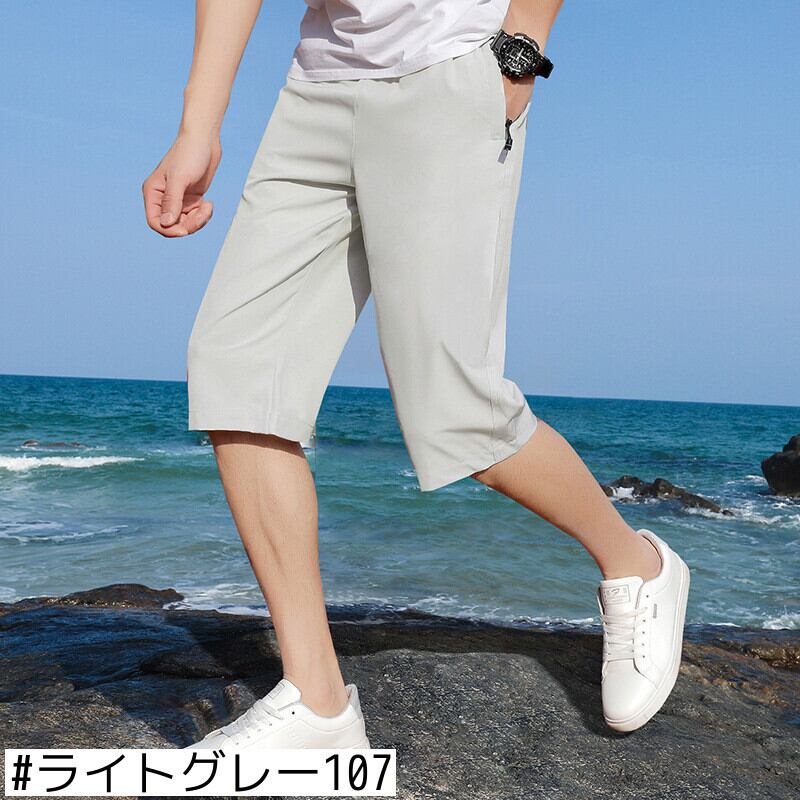 アイスシルクパンツサマーニューショーツメンズクロップドパンツルーズラージサイズ7ポイントカジュアルパンツストレートメンズパンツ薄手 大きめサイズ 夏物 ブルマー 7327061117804469
