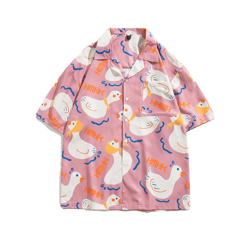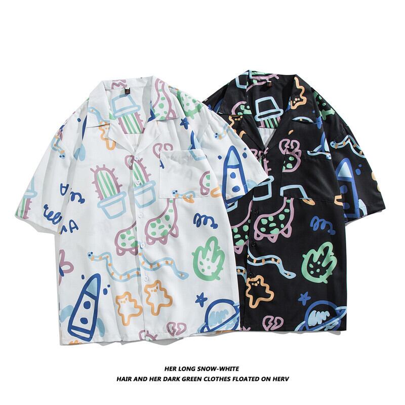 ストリート落書き漫画カップルハワイアンキューバ襟花柄シャツメンズヨーロッパとアメリカのルーズ潮ブランド花柄半袖シャツ ヨーロピアン 1285158769941368