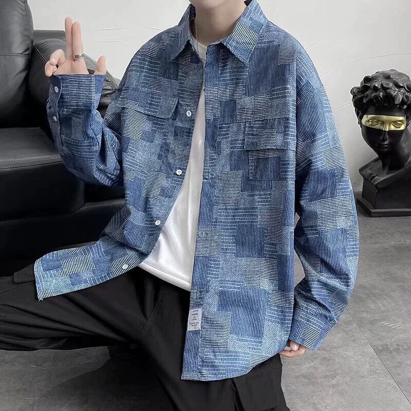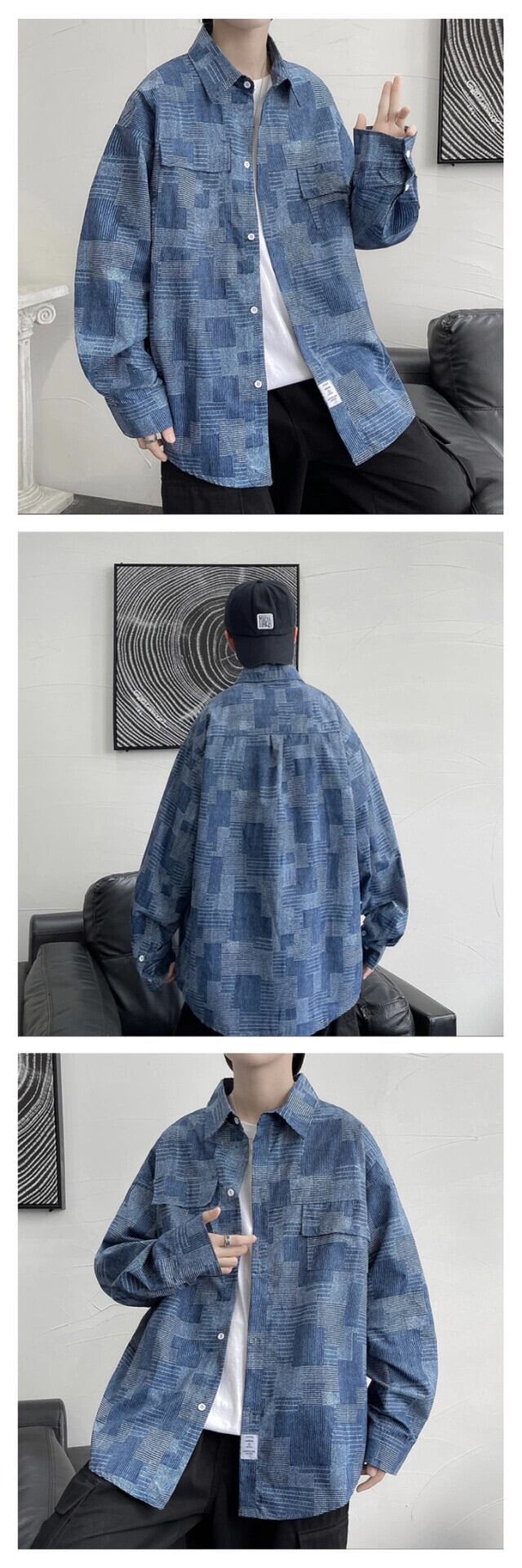 これらの春と秋のレトロなデニムシャツメンズ香港スタイルのトレンドインオールマッチ冬カジュアルチェック柄シャツジャケット潮 スプリング 春物 オータム 秋物 ウィンター 冬物 1285126816272044