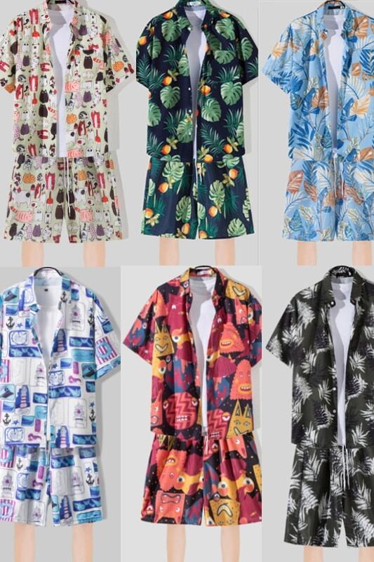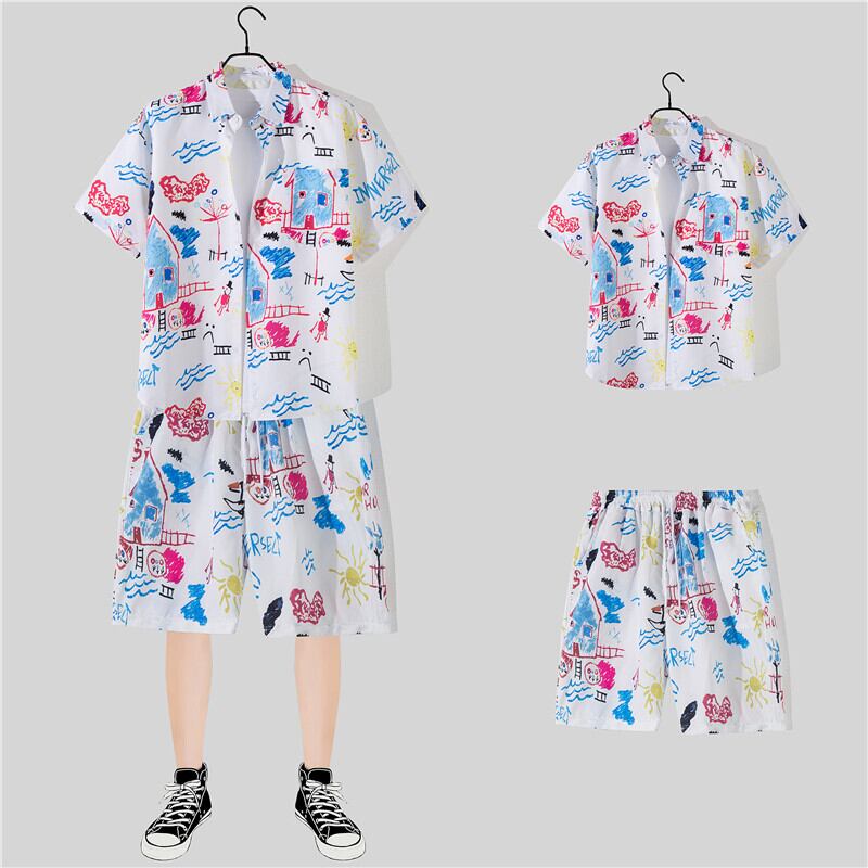夏のビーチスーツ メンズ フラワーシャツ スポーツ ハワイアン カップル 海辺 旅行 休暇 2点セット サマー 夏物 フラワーデザイン 1285142116728719