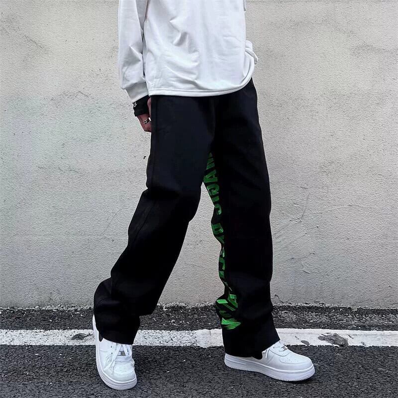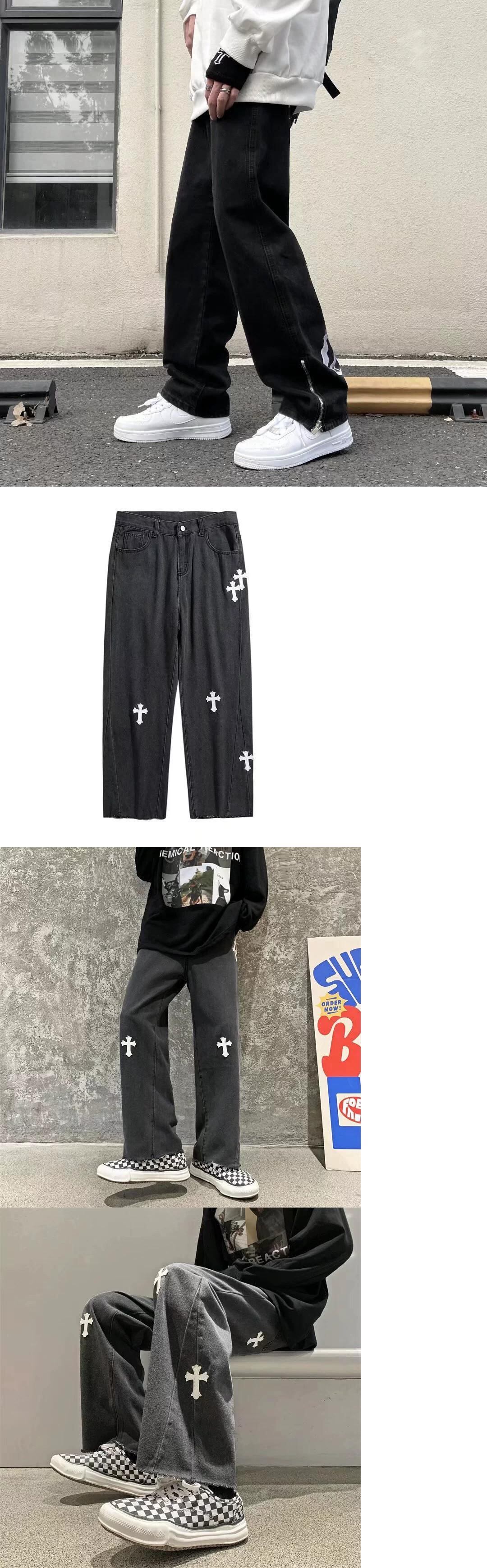 ストリートサイドジッパースリットジーンズボーイズトレンディフライドストリートルーズニッチ刺繍ストレートレッグパンツ レッド 128511373151304