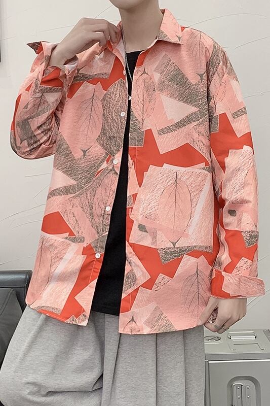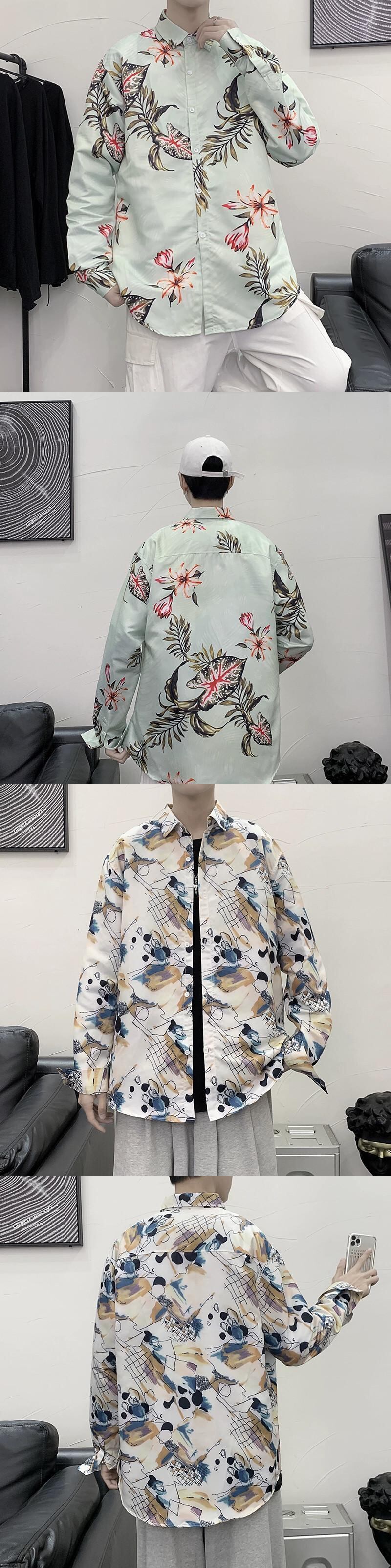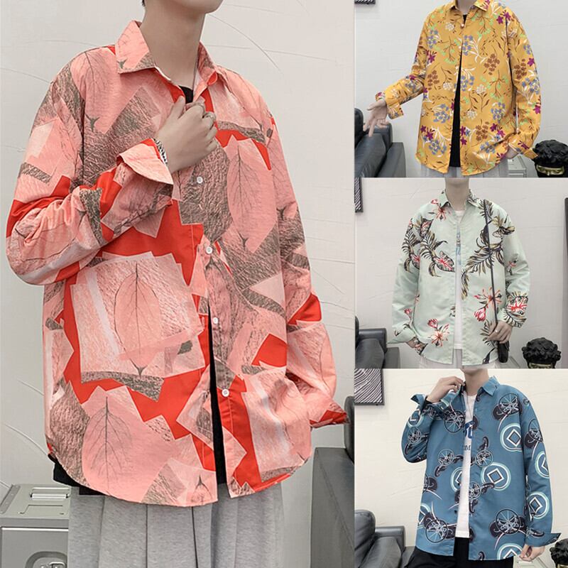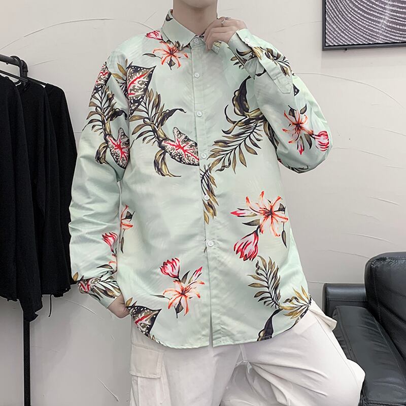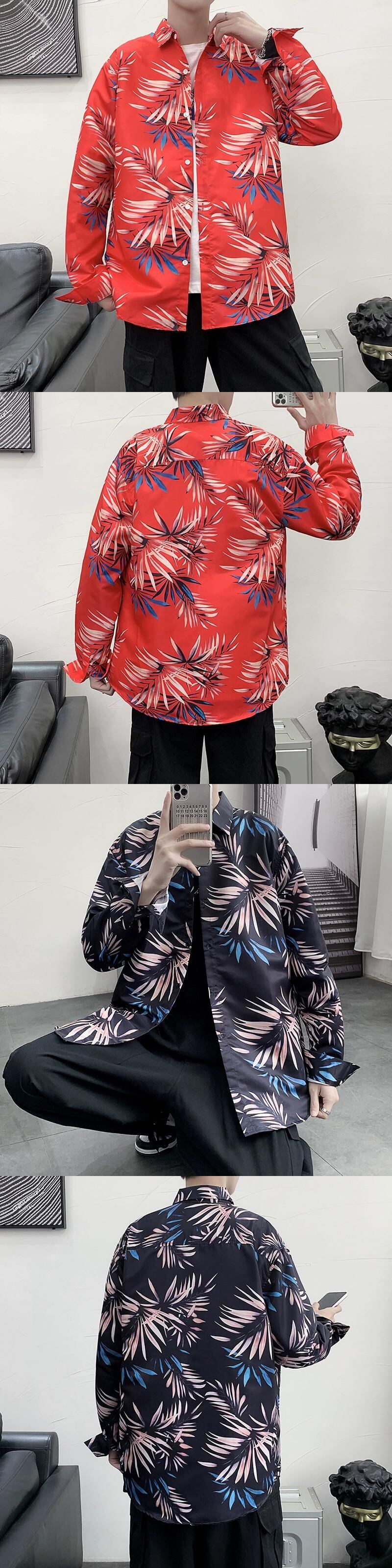 トレンディなレトロな香港スタイルの悪党ハンサムなシャツ長袖花柄シャツ男性と女性のビーチハワイ休暇スタイルのカップルジャケット ロング 1285126484190038