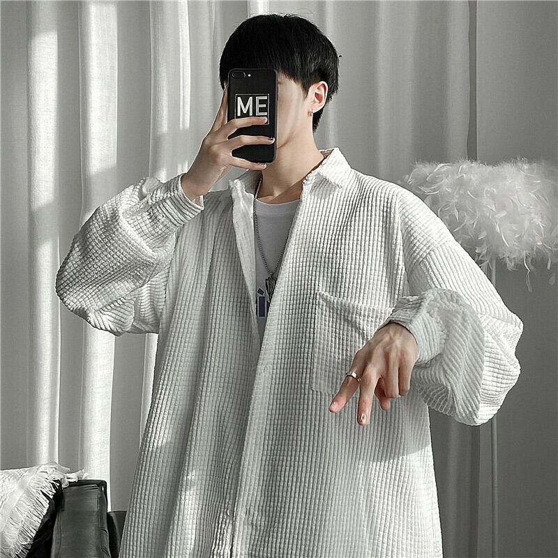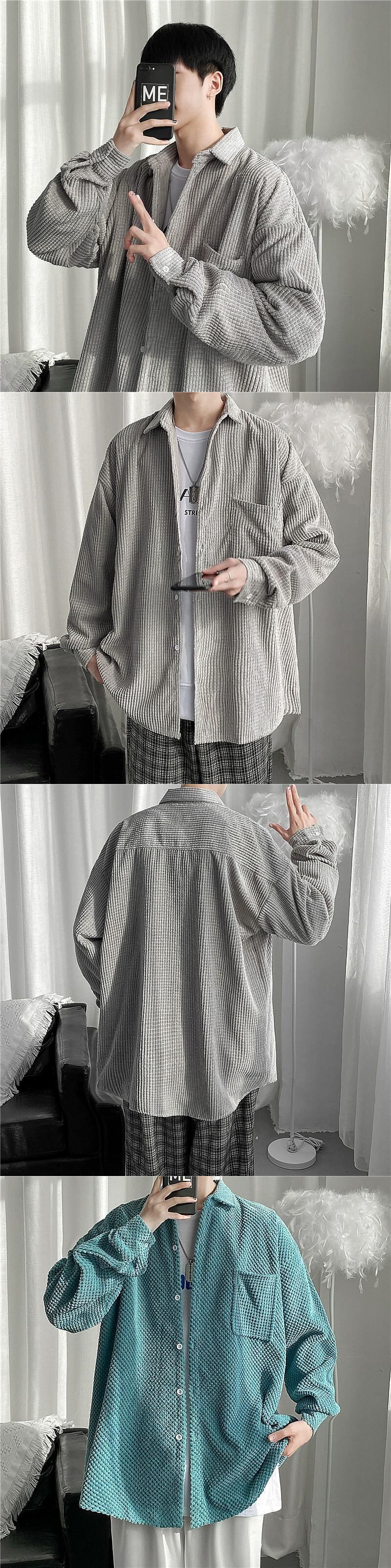 ツーリングジャケット男性悪党ハンサムイン潮秋と冬カジュアルオールマッチカップルシャツジャケットワッフル香港スタイルトップ オータム 秋物 ウィンター 冬物 128517390796276