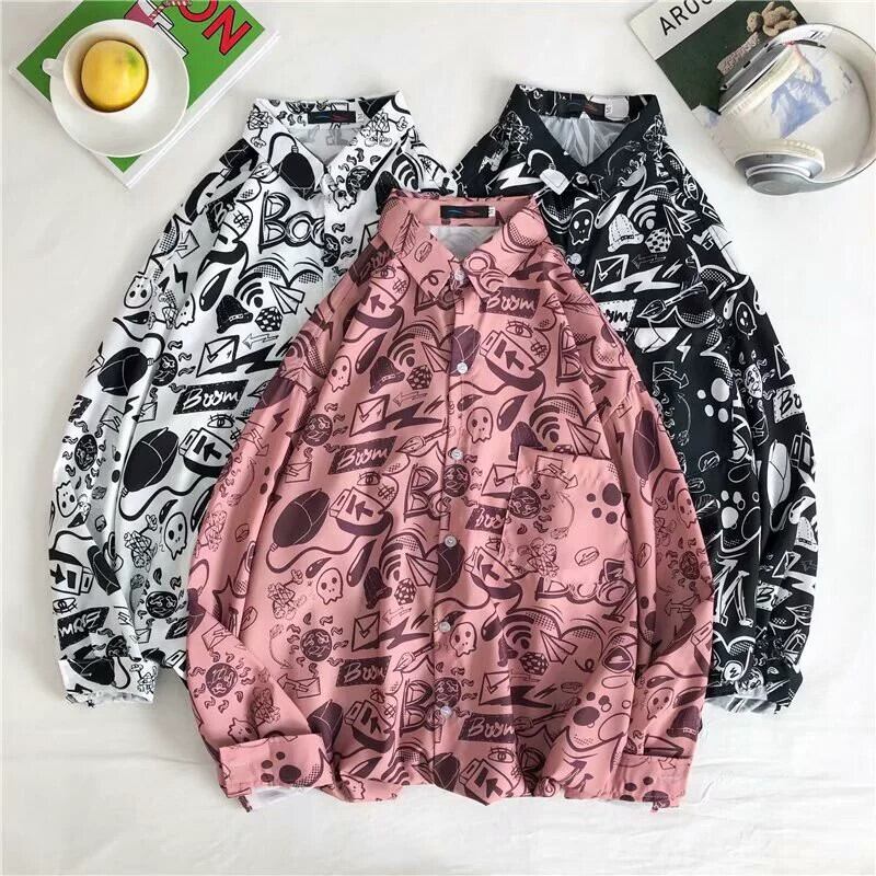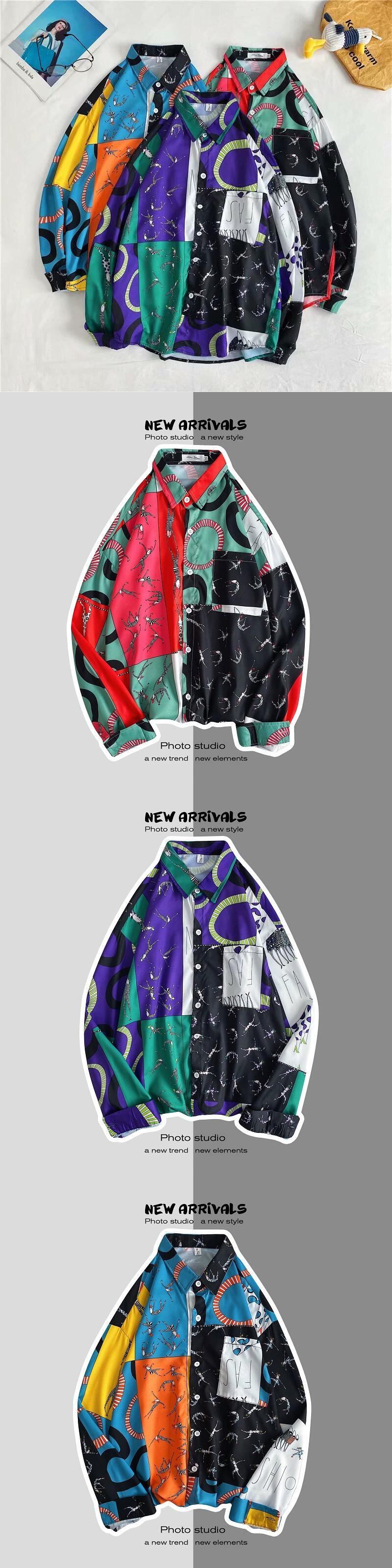 香港スタイルヴィンテージレトロフラワーシャツ男性と女性ルーストレンド潮ブランド怠惰な風カップル長袖シャツジャケット ロング フラワーデザイン ビンテージ 1285140757030801