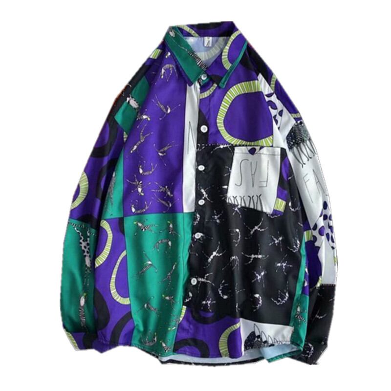 2021春夏バージョンのヴィンテージルーズハワイアンヴィンテージ柄シャツメンズ長袖トレンディなハンサムな男性と女性 ロング スプリング 春物 サマー 夏物 ビンテージ 1285110939913727