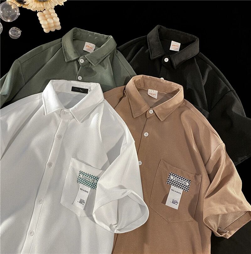インス ワッフル シャツ 半袖 メンズ レディース 夏 エーゼ トレンド ラベル カジュアル ルーズ 半袖シャツ BF コート サマー 夏物 1285124562073656