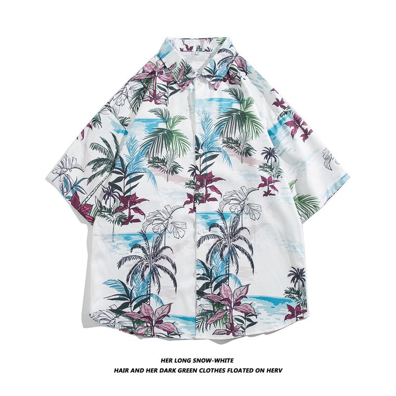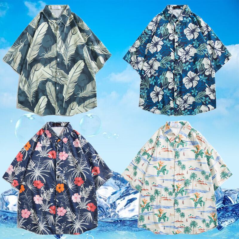 2023 新香港スタイルレトロヴィンテージ半袖フラワーシャツメンズハワイアンスタイルビーチカップルシャツ女性 フラワーデザイン ビンテージ 1285183996857652
